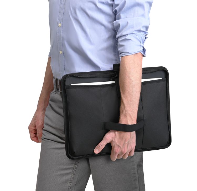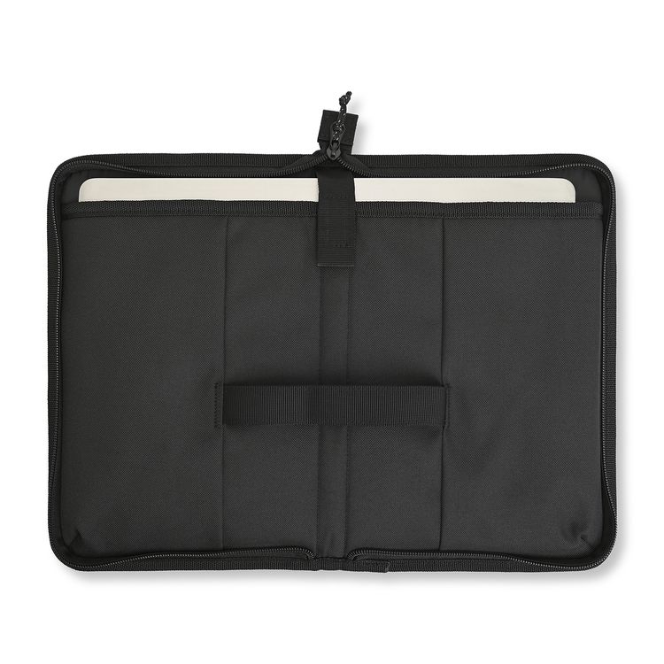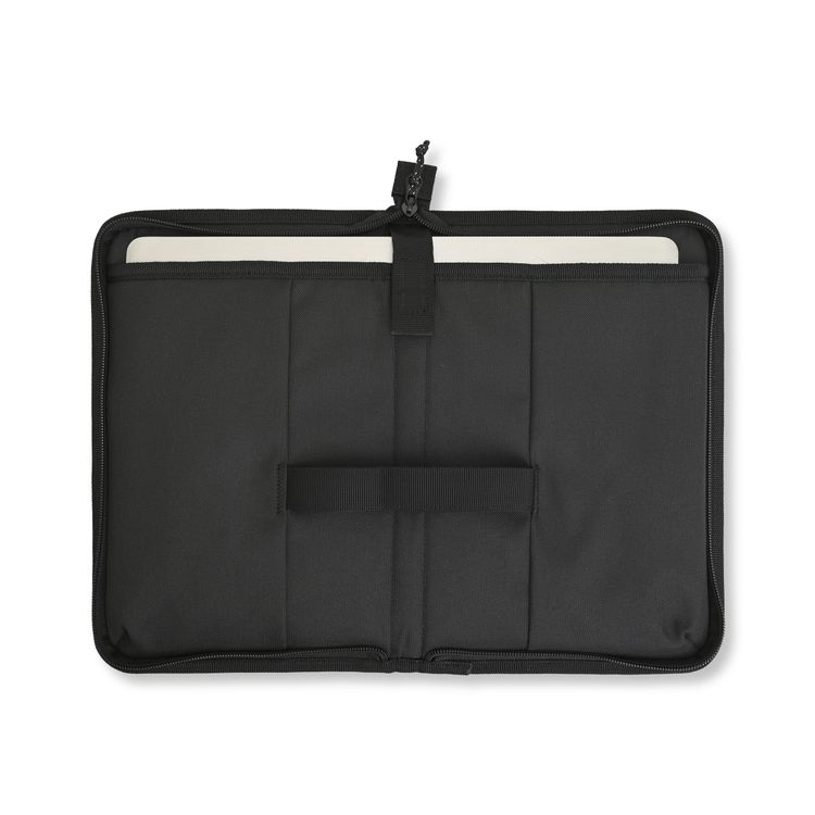 External open pocket with webbing strap holds notebooks or iPad and Tablets