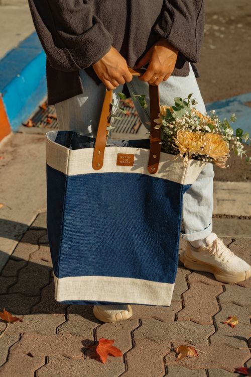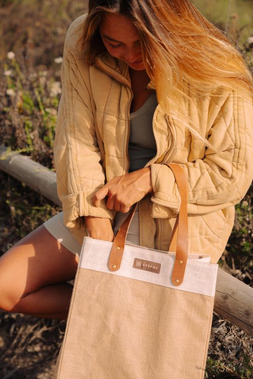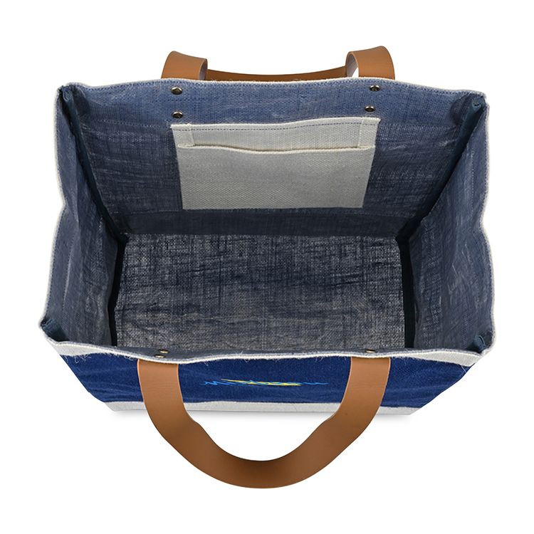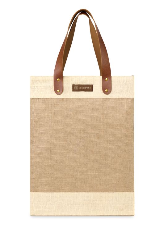 Tall, stylish, durable. The Out of the Woods® Jute Tall Tote is crafted from renewable, biodegradable jute with vegan leather handles and rivet reinforcements for lasting strength. Its tall, spacious design fits market finds or daily essentials, while an interior pocket keeps items organized. Cream accents add a refined touch, making it both practical and timeless. PVC free. Additional decoration charges may apply.