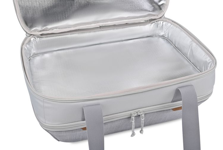 Dual insulated foil-lined compartments to keeps items hot or cold