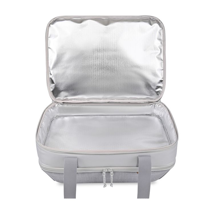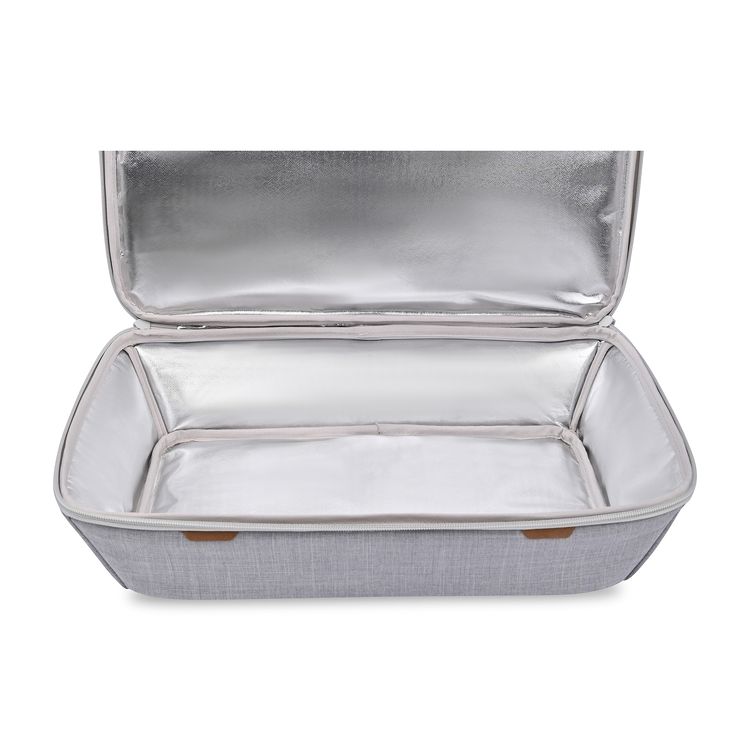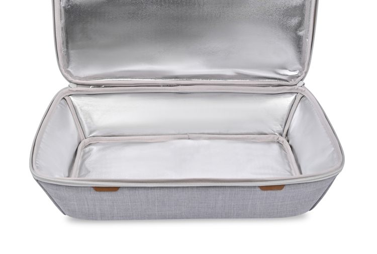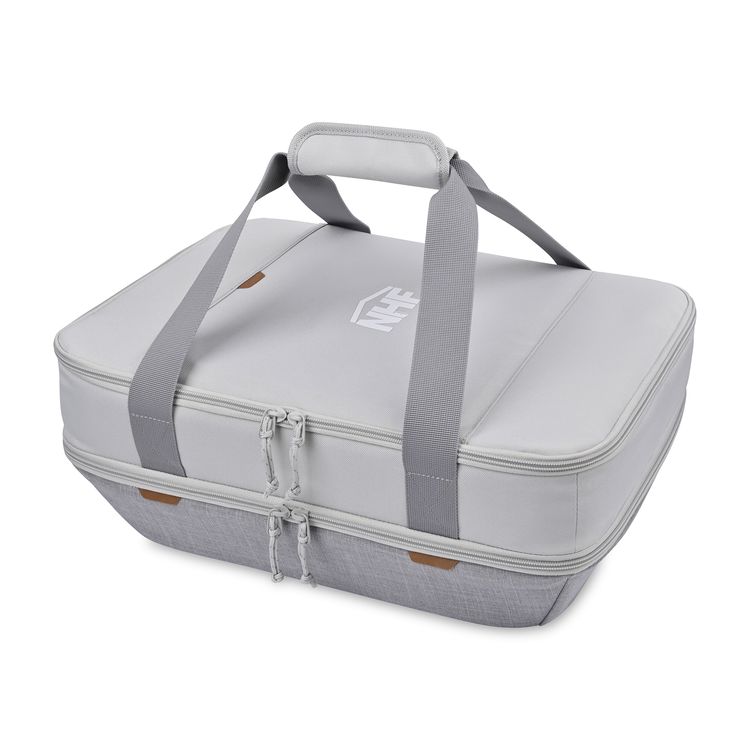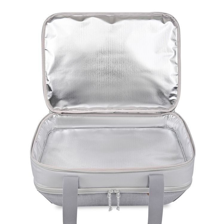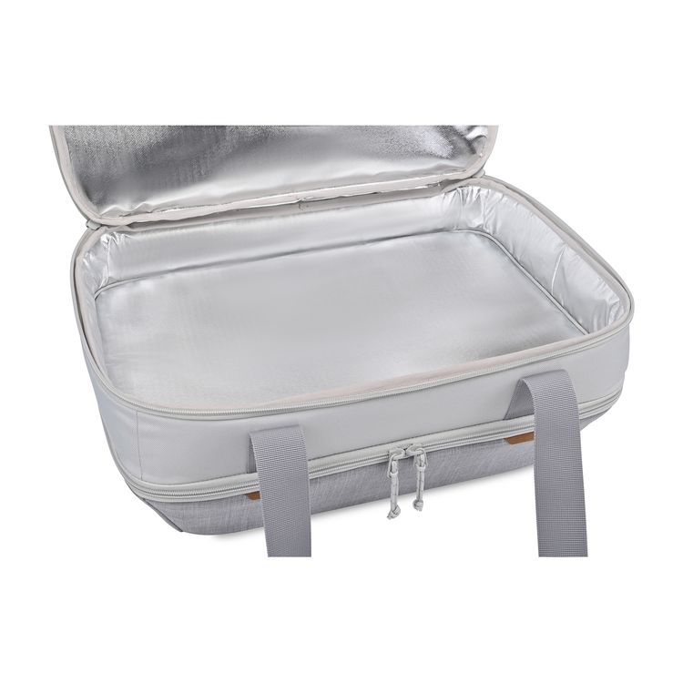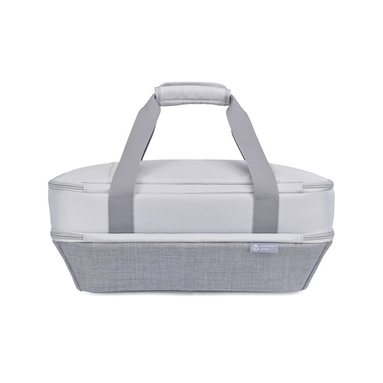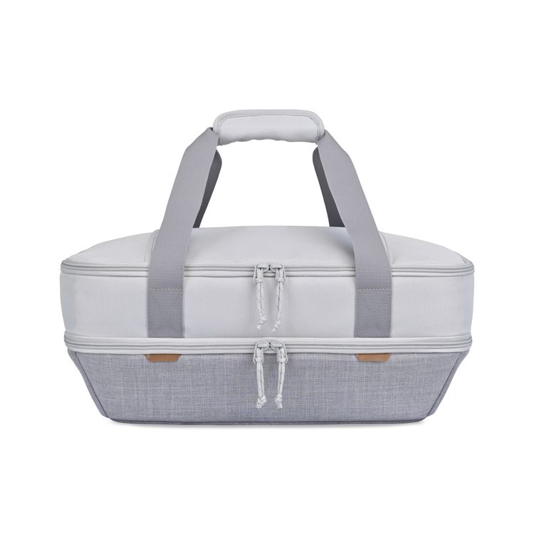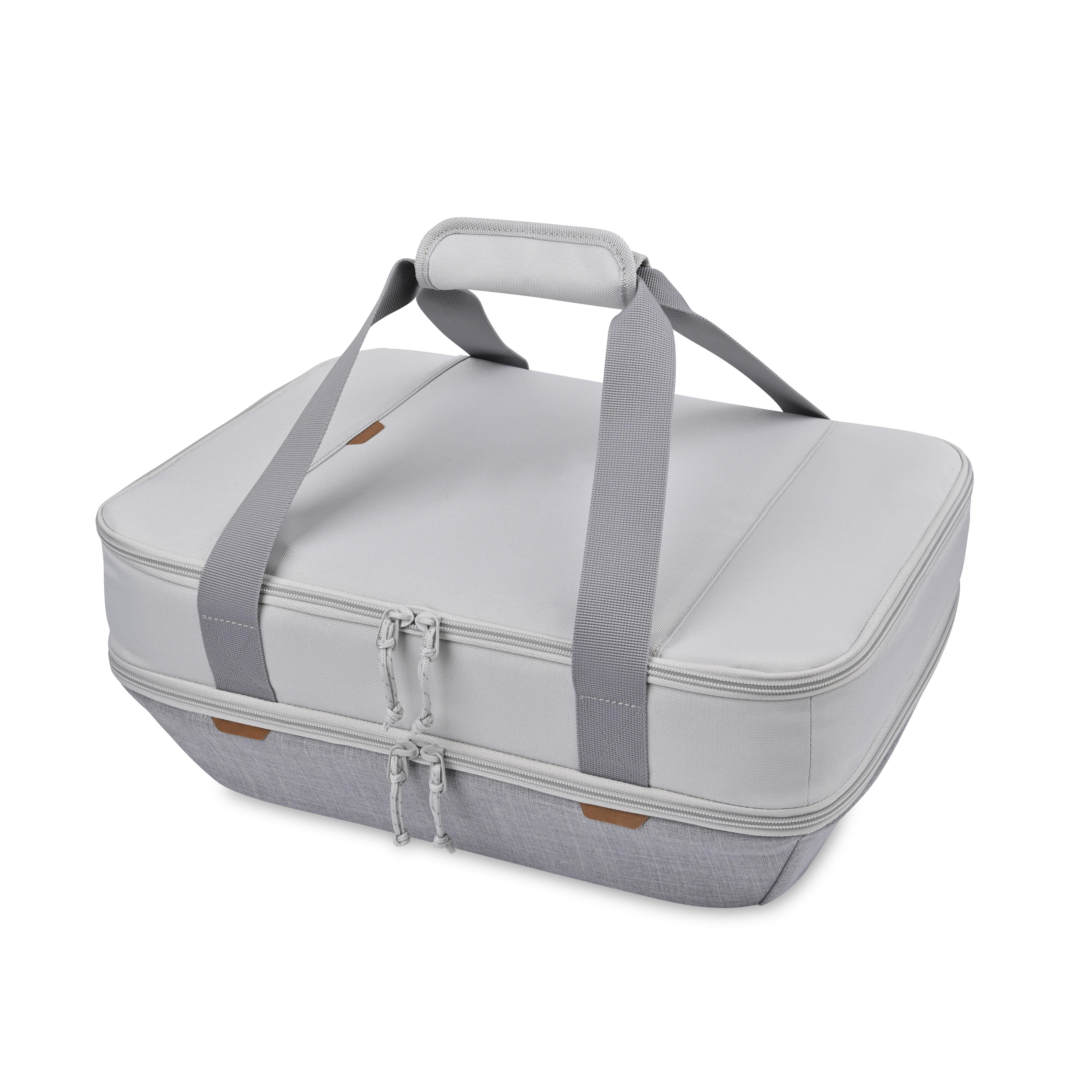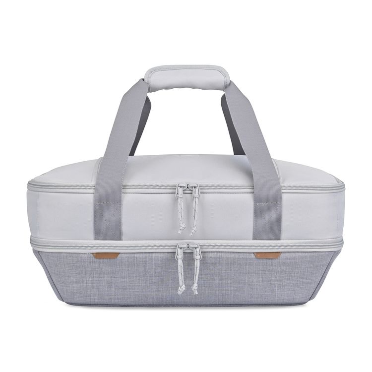 The Parkview Insulated Dual Food Carrier makes transporting casseroles effortless, with two foil-lined compartments that keep dishes hot or cold. Designed to fit most 9x13 pans, it features a padded grab handle, top stash pocket, and a stylish color-block design—perfect for potlucks, picnics, and family gatherings. Light dirt or stains can be cleaned with water or mild detergent Please note: casserole dish not included SBN 2.42 Additional decoration charges may apply.