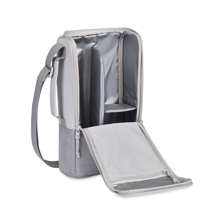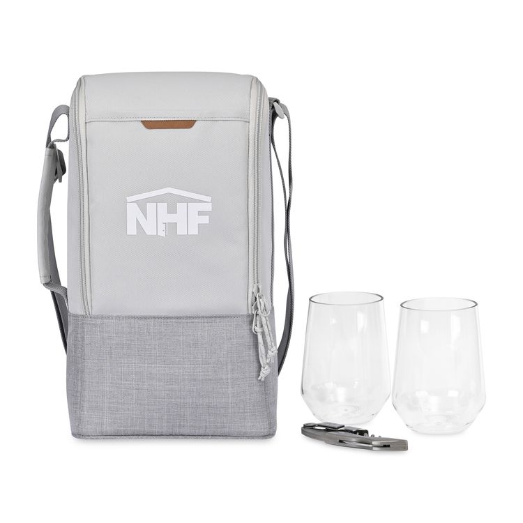 The Parkview Insulated Wine-to-Go Tote is the perfect picnic companion, made with recycled poly and a stylish color-block design. Featuring a roomy insulated compartment, front pocket, and adjustable strap, it comes complete with two Tritan wine tumblers and a corkscrew—just add the wine. Wipe interior and exterior surfaces clean before storing and between uses Light dirt or stains can be cleaned with water or mild detergent Set also includes (2) Tritan Wine Tumblers and (1) Corkscrew - Wine not included Only the cooler bag can be decorated, the items inside are sold blank GRS SBN 2.43 Additional decoration charges may apply.