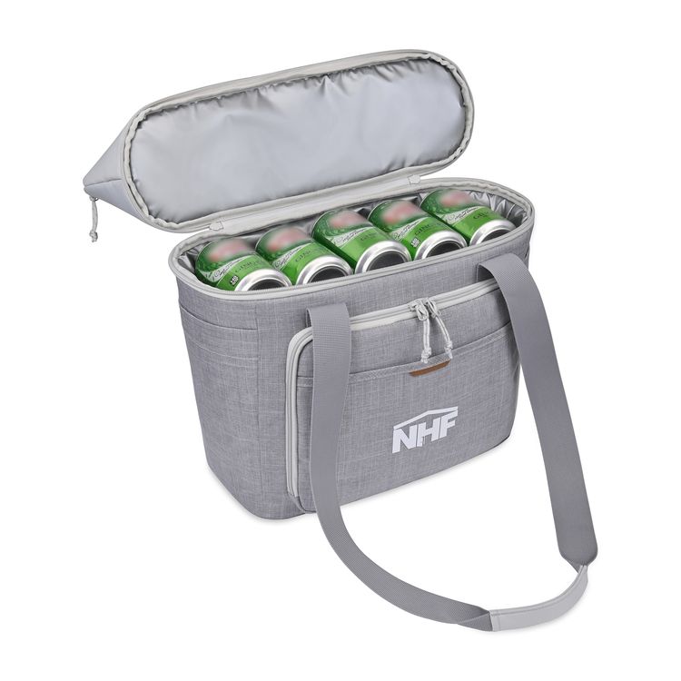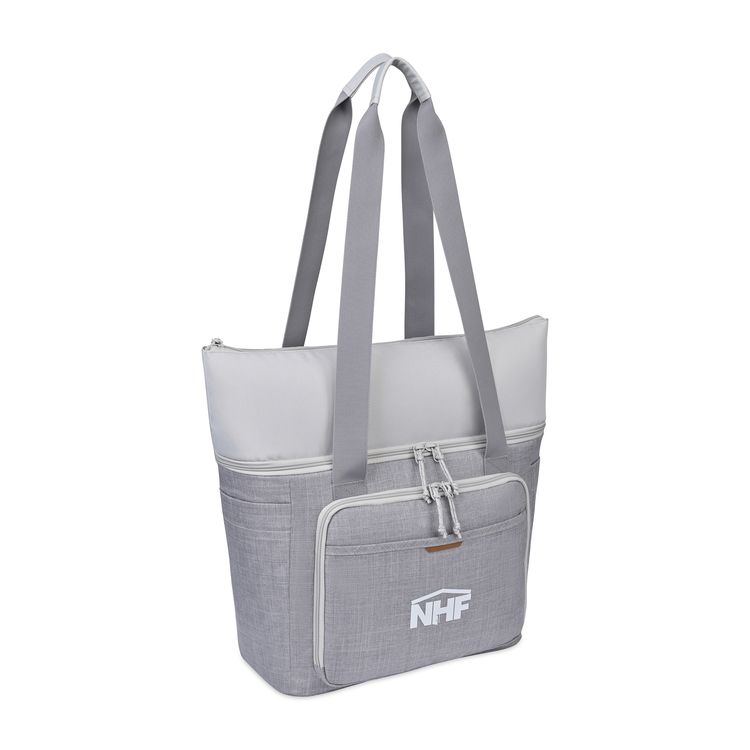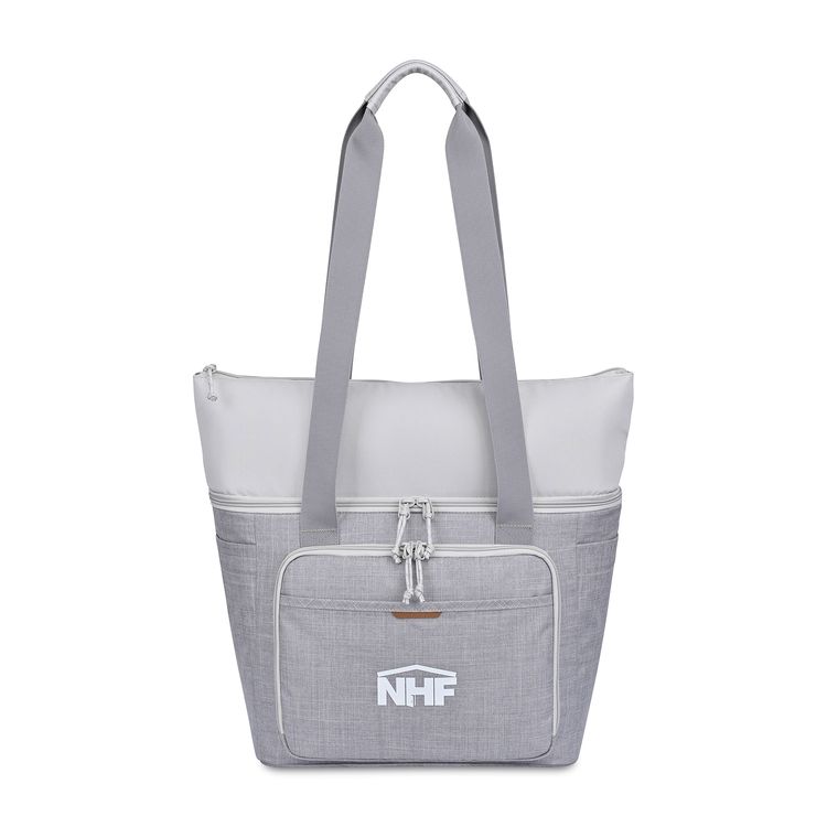 The Parkview Tote Cooler combines sustainability and style in a fresh color-block design. With dual insulated compartments, side bottle pockets, and a roomy interior that holds up to 30 cans, it’s perfect for backyard BBQs, picnics, and everyday outings. Comfortable shoulder straps and easy-clean surfaces make it your go-to cooler tote. Wipe interior and exterior surfaces clean before storing and between uses Light dirt or stains can be cleaned with water or mild detergent Holds 30 cans SBN 1.78 Additional decoration charges may apply.