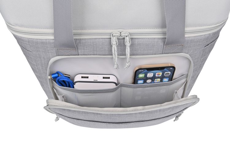 Front zippered pocket and separate slash pocket for stashing smaller items