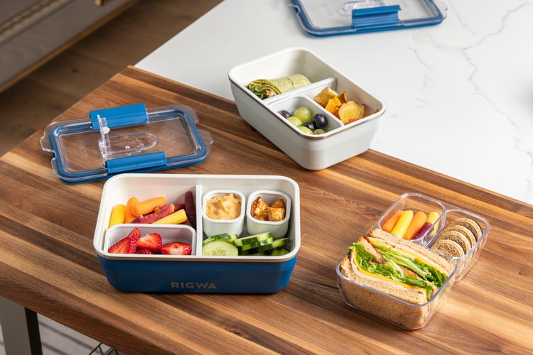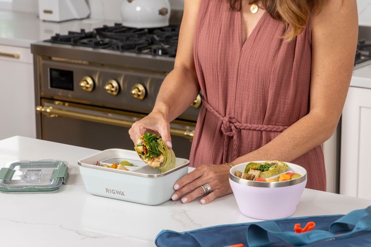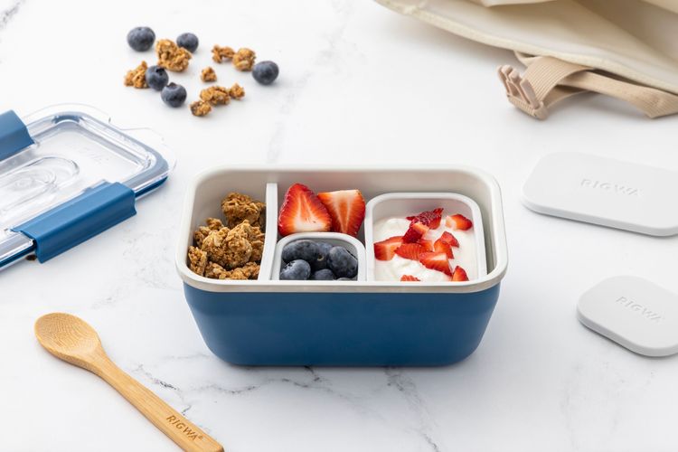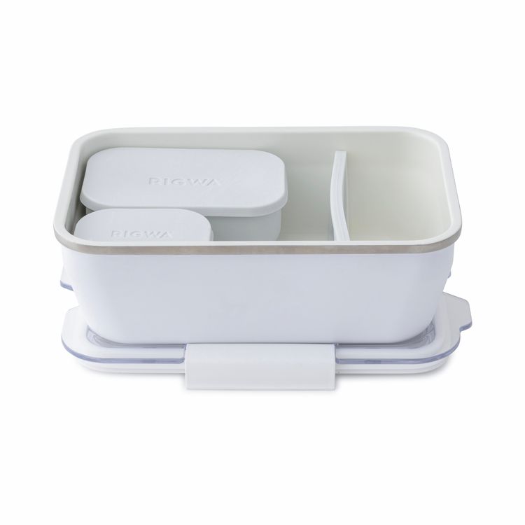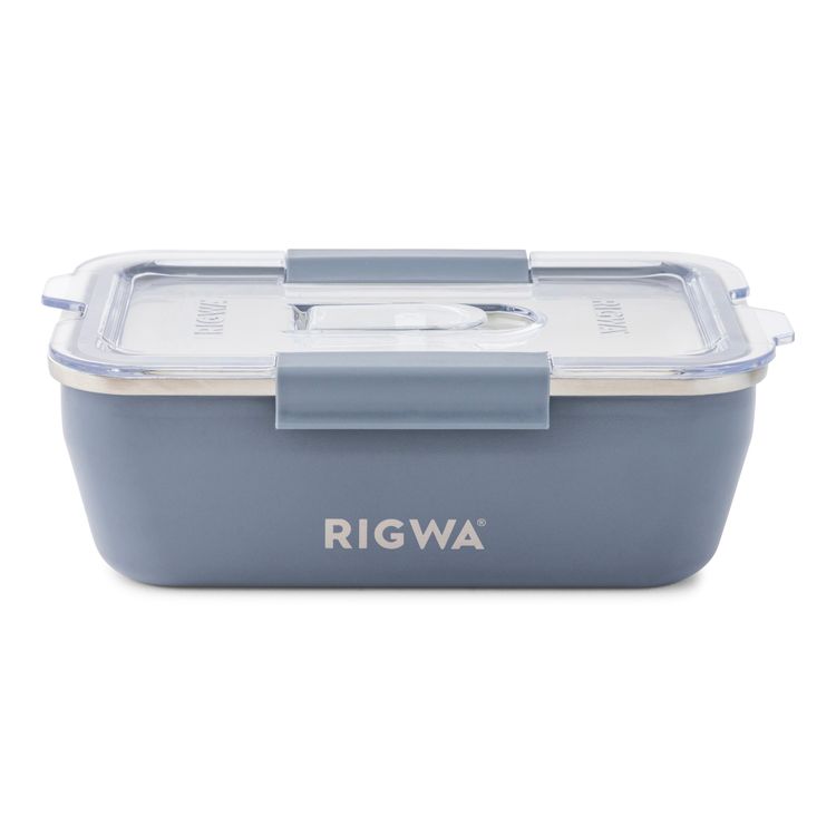 Pack, serve, and store—anywhere. The RIGWA® Travel Bento Box 8x5 keeps meals fresh with double-wall stainless steel and a crystal-clear Tritan lid. Its 36oz capacity, leakproof latches, and stackable design make it perfect for lunch, leftovers, or snacks. Includes silicone mini cup, side dish, and divider for easy meal organization—ready for office, travel, or adventure. Multi-use versatility functions as food storage, lunch box, or serveware Dishwasher safe (top rack), Hand Wash recommended Comes with one platinum silicone mini cups (3oz), one silicone side dish (6oz), and silicone divider wall Packed in a RIGWA retail belly band New Additional decoration charges may apply.