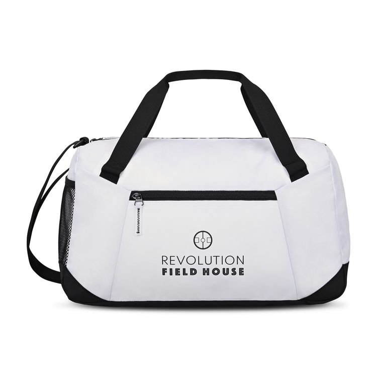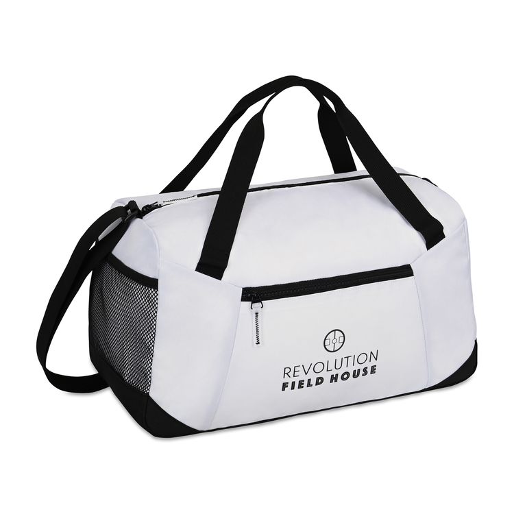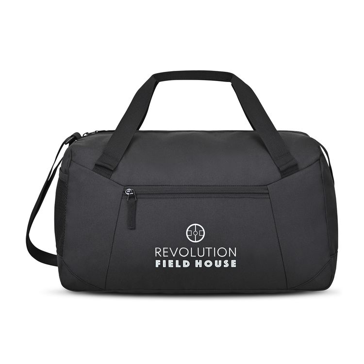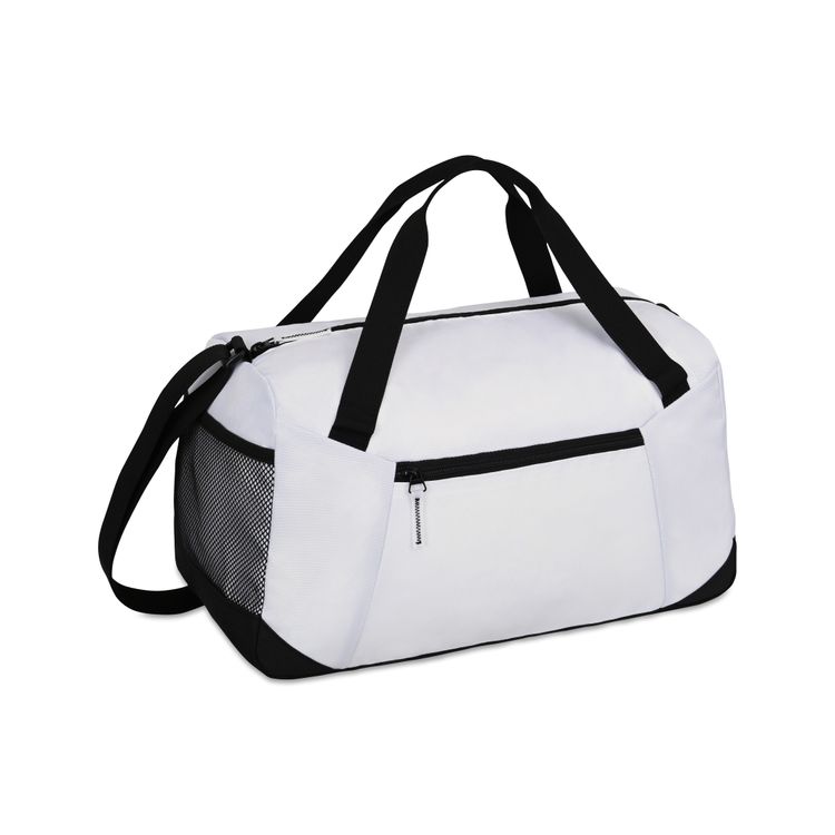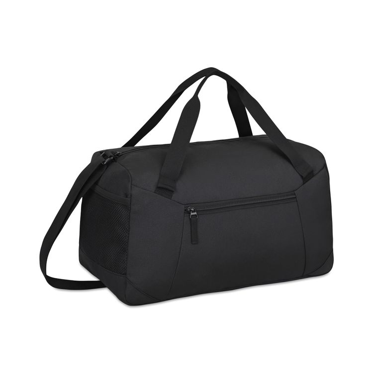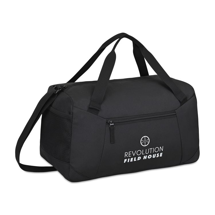 Built for gym, travel, and more. The Rally Recycled Sport Duffel is crafted from 100% recycled materials with a spacious main compartment, front zip pocket, and mesh end panel for quick-access storage. Sturdy grab handles and an adjustable shoulder strap make it easy to carry—your go-to bag for fitness, sports, or everyday use. PVC Free Product SBN 0.41 Additional decoration charges may apply.
