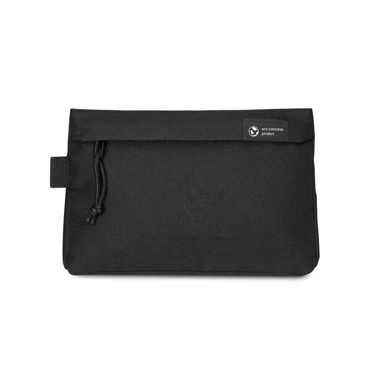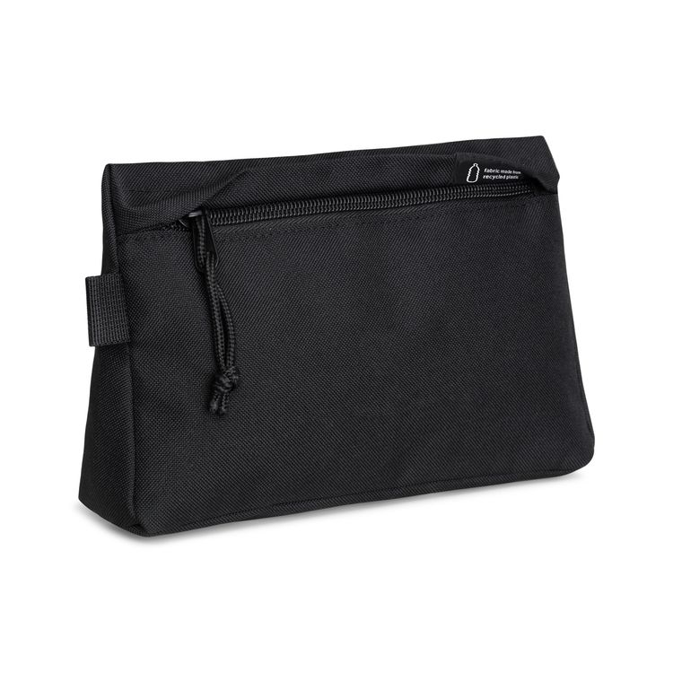 • A modern and sustainable update to a classic pouch using recycled fabric and webbing made from plastic bottles