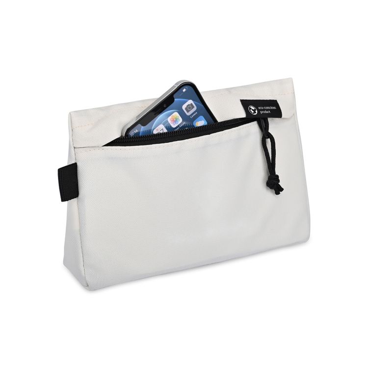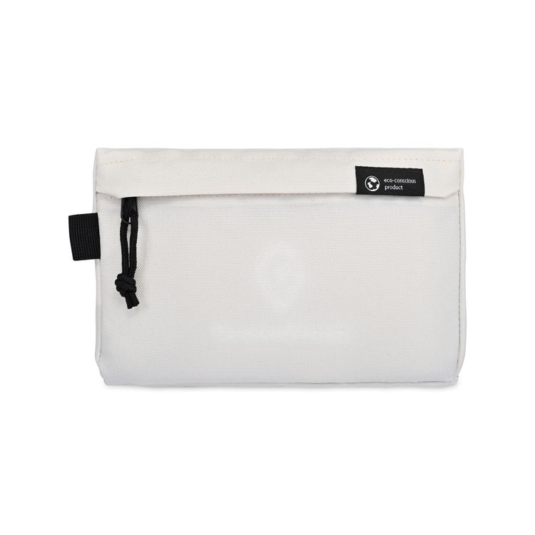 This modern zip pouch blends sustainable design with everyday function. Made from recycled bottles and verified via AWARE™ Product Passport, it features a secure main compartment and a webbing loop for easy attachment. Compact, versatile, and PVC Free. SBN AWARE 0.14 Additional decoration charges may apply.