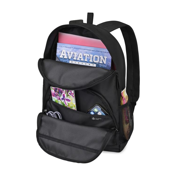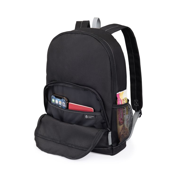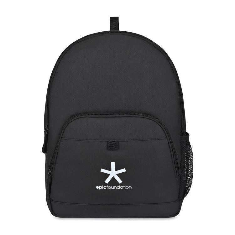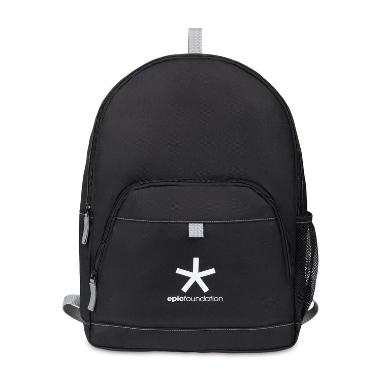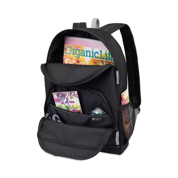 The Repeat Recycled Poly Backpack updates a classic with fabric and webbing made from recycled plastic bottles. With a roomy zippered main compartment, front pocket with organizer, side mesh bottle pocket, and trolley strap, it’s practical, eco-conscious, and ready for everyday use. PVC-free. SBN 0.75 Additional decoration charges may apply.