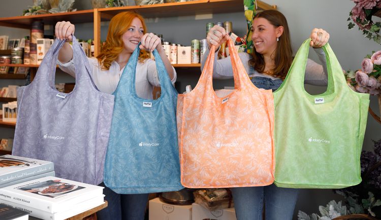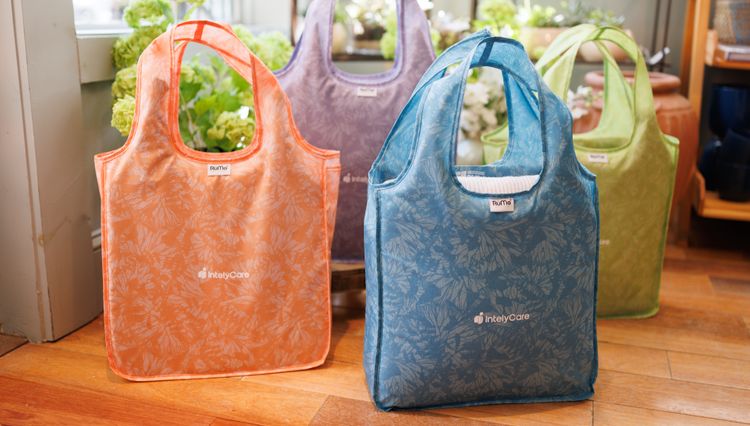 The Recycled Medium Tote easily packs into the side pocket of the tote to pack away when not in use