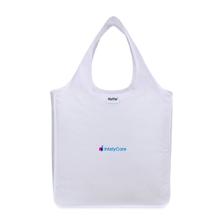 Compact, versatile, recycled. The RuMe® Recycled Medium Tote is a go-anywhere essential, crafted from recycled materials and designed to pack into its own side pocket for easy storage. With 23" shoulder straps and a roomy interior, it’s perfect for errands, travel, or daily carry. Machine washable and PVC free, it’s a reusable tote that’s always ready when you are. Scan the QR code located on the inside of the tote for packing instructions SBN 0.16 Additional decoration charges may apply.
