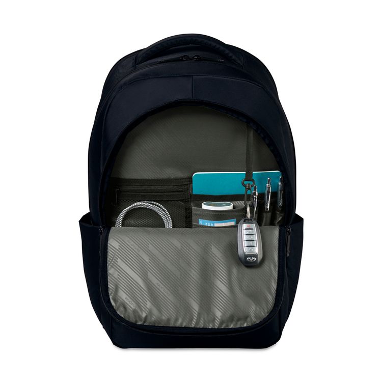 Smart design for business on the move. The Samsonite Fox Chapel Laptop Backpack combines modern style with professional function, featuring a padded 15.6" laptop compartment, 10" tablet pocket, and multiple organizers. With breathable padding, water bottle pockets, and a StackIt™ strap for luggage, it’s built for daily commutes and travel. Adjustable, mesh accented padded shoulder straps Comfort back panel is generously padded and accented with mesh for breathability StackIt™ Strap feature fits over most luggage trolley handles PVC Free Product Additional decoration charges may apply.