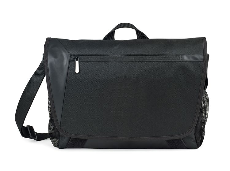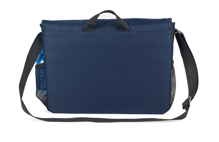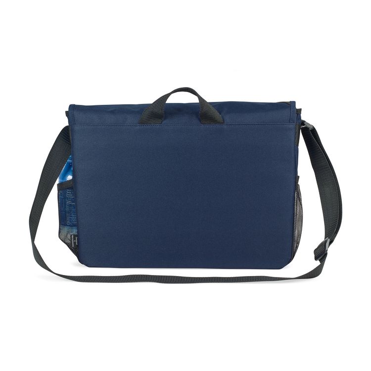 Large main compartment with hook and loop closure includes an interior laptop pocket (sized to hold up to a 15” laptop). Hook and loop closure can easily be adjusted based on how much is being carried in the main compartment. Front zippered pocket ideal for storing accessories. Zippered pocket and pen loop for additional organization under the front flop. Dual mesh water bottle pockets. Adjustable shoulder strap. Top grab handle. Top grab handle SBN 1.39 Additional decoration charges may apply.