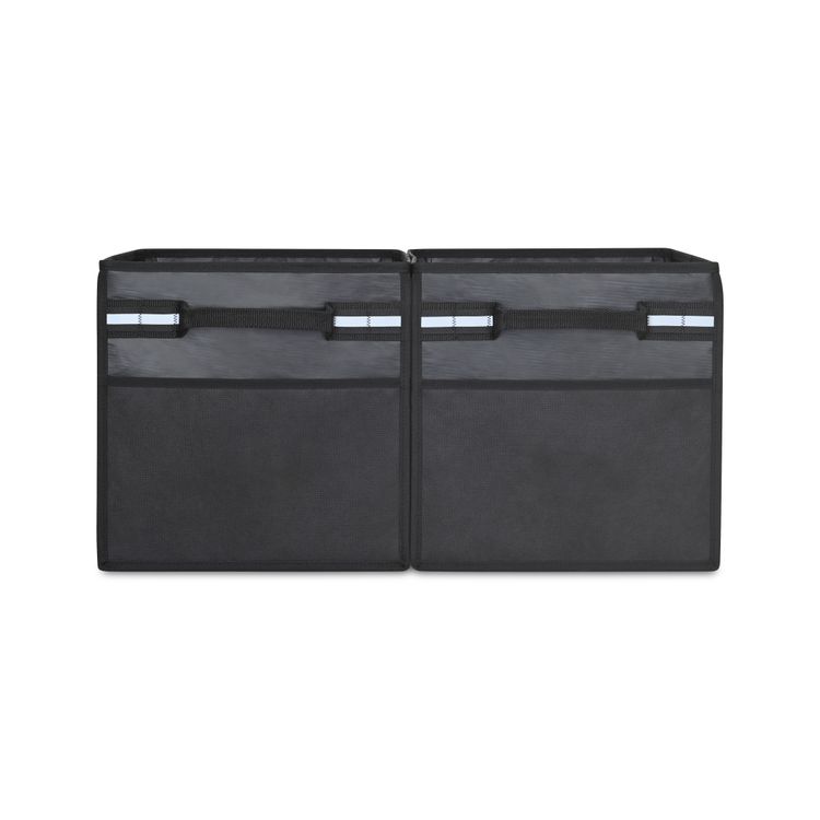 Smart storage that clicks. The Structure Cargo Connect Boxes (Set of 2) feature hidden magnets that link together for customizable tandem storage. Made with recycled materials, each box includes grab handles, outer pockets, and reflective details for safety. Collapsible and easy to fold flat, they’re perfect for organizing your home, office, or trunk. PVC Free SBN Additional decoration charges may apply.