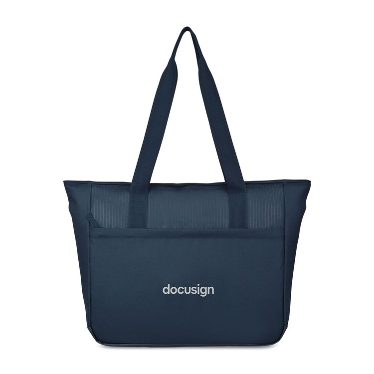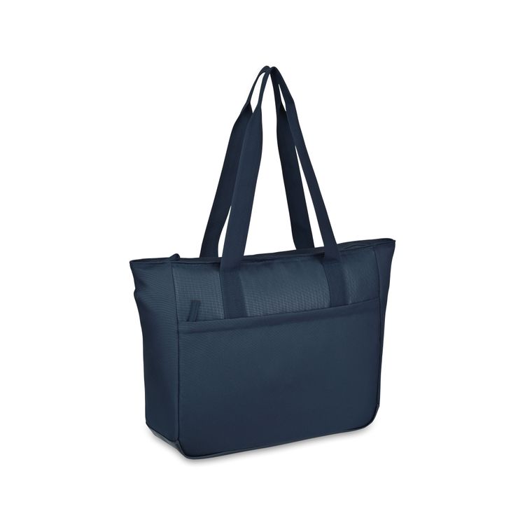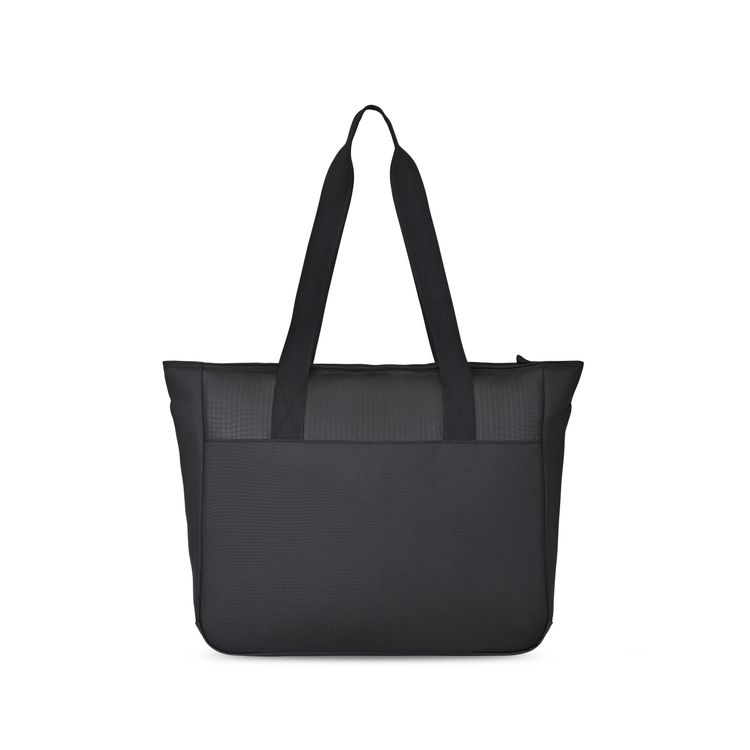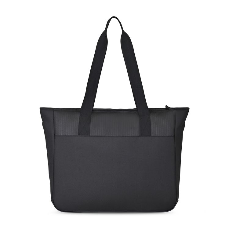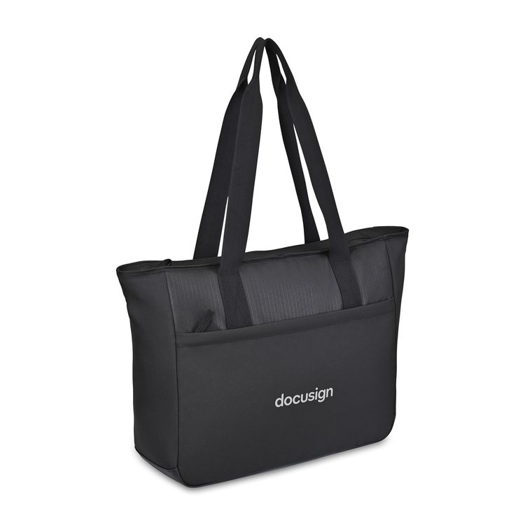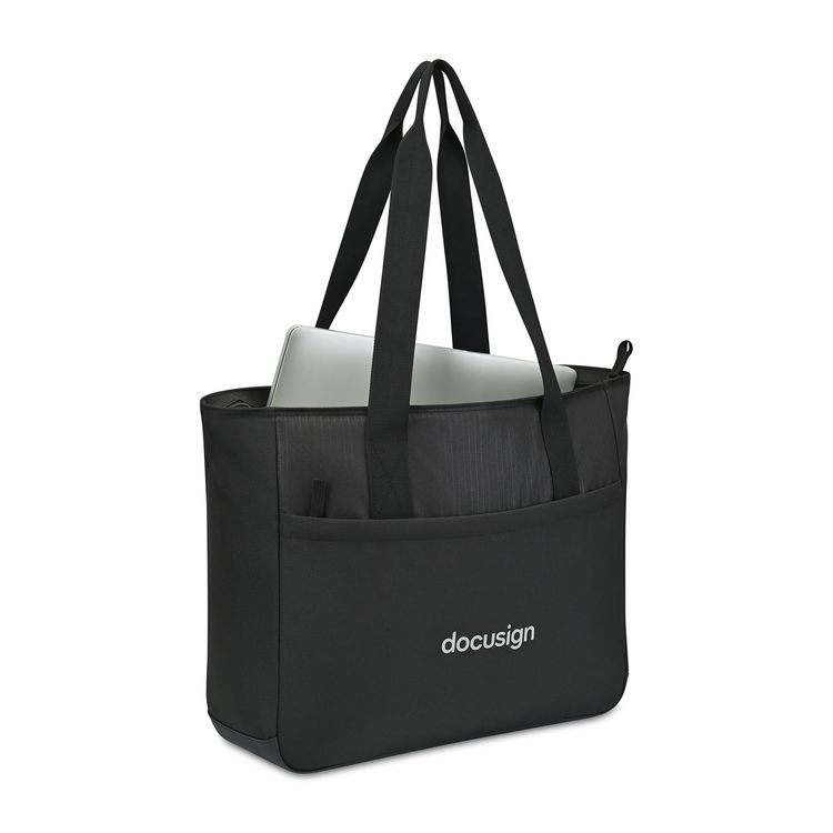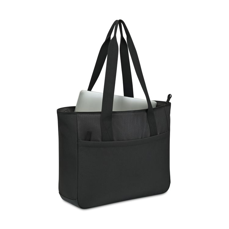 Meet the Transit Laptop Tote—your go-to for sustainable, organized carry. Designed with sleek style and smart storage, it features stretch mesh pockets, zip compartments, and room for a 16" laptop. Sturdy handles and recycled materials make it perfect for commuting or travel. PVC free. PVC Free Product New SBN 1.31 Additional decoration charges may apply.
