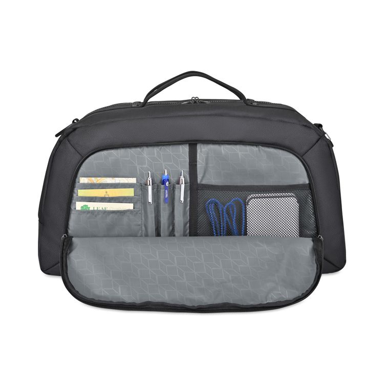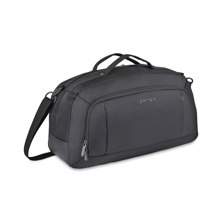 The Vertex® Brooklyn Duffel is built for short trips with a roomy main compartment, dedicated shoe or laundry pocket, and front organizer for accessories. Comfortable grab handles, a padded shoulder strap, and a trolley sleeve make it the perfect 1–3 day travel companion. Trolley strap slips over luggage handles for easy transport PVC Free Product SBN 3.26 Additional decoration charges may apply.