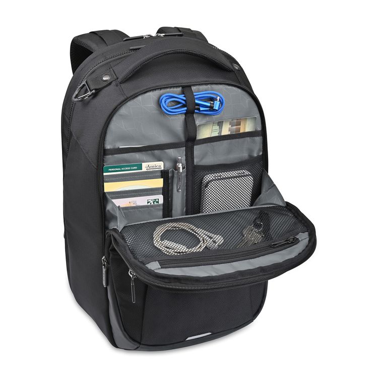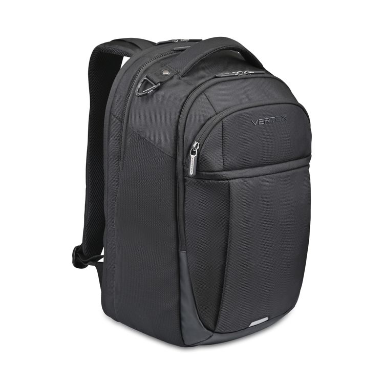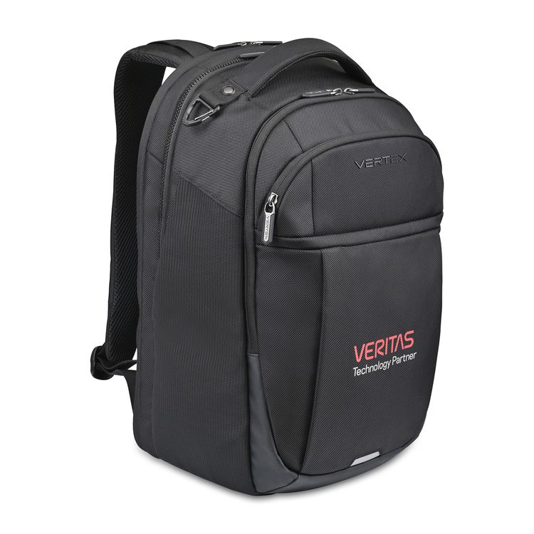 The Vertex® Brooklyn Laptop Backpack combines durability with smart organization. Featuring a padded compartment for a 16" laptop and 10" tablet, it unzips flat for easy access. With multiple organizers, hidden security pocket, mesh bottle pockets, and trolley strap, it’s built for travel and tech on the go. Hidden zippered pocket on back panel for secure storage Padded sports mesh back panel for a comfortable carry Adjustable shoulder and sternum straps Trolley strap slips over luggage handles for easy transport PVC Free Product SBN 4.67 Additional decoration charges may apply.