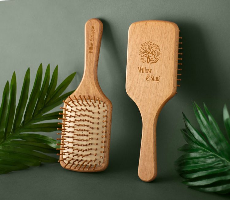 Crafted from durable beechwood and renewable bamboo, this paddle-shaped hairbrush offers a natural alternative to plastic, providing both strength and long-lasting quality