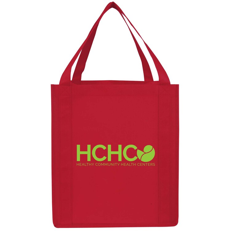 Show how environment loving your brand with our reusable and recyclable Large Non Woven Tote. Our reusable tote bag is lightweight and eco friendly. It is made of eco friendly 80 GSM Non-Woven Polypropylene material which is made from 10% Post-Consumer recycled content. This tote features a large main compartment and includes a removable bottom insert.