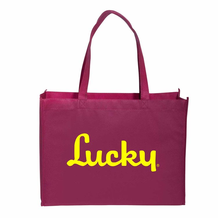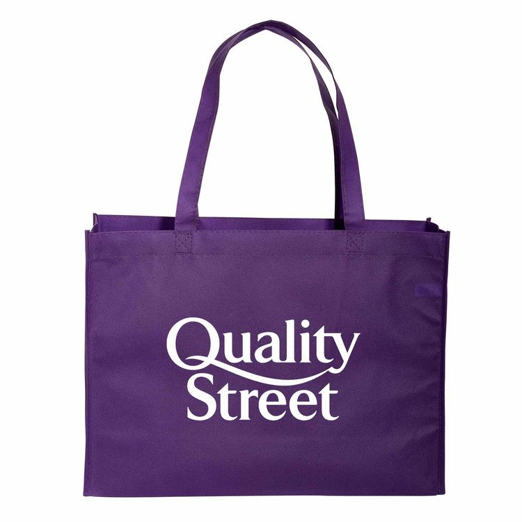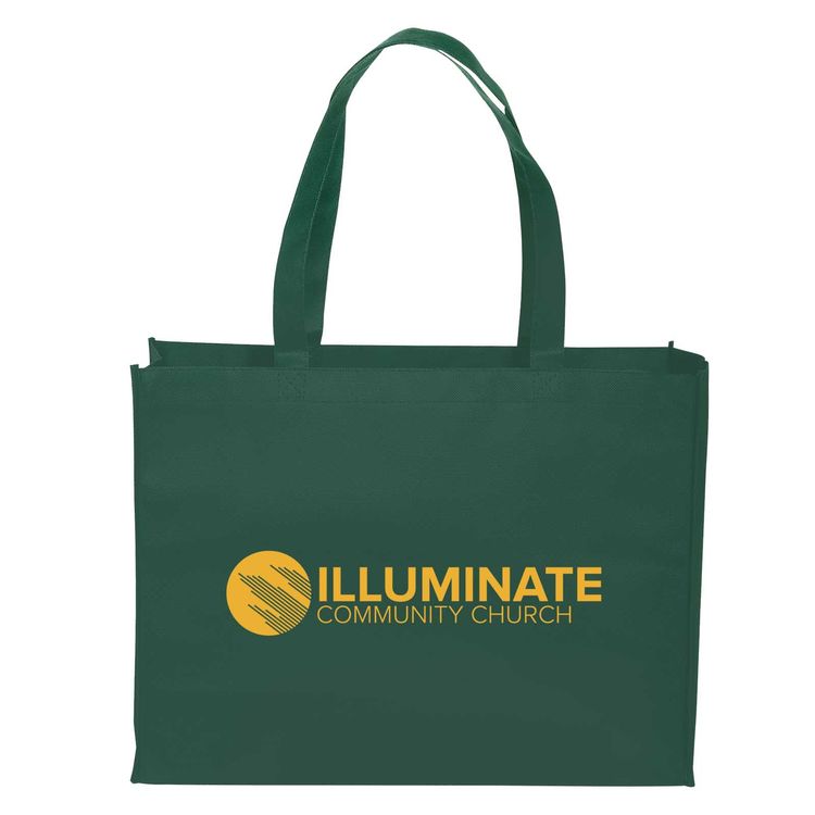 Show how environment loving your brand is with our reusable and recyclable Standard Non-woven Tote. It is made of eco friendly 80 GSM Non-Woven Polypropylene material which is made from 10% Post-Consumer recycled content. Item Size: 16" w x 12" h x 6" d Handle: 22"