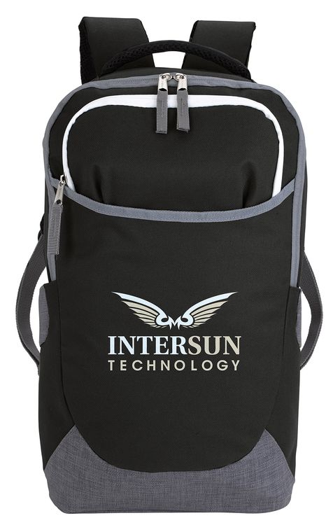 This computer backpack is ideal for work, school, or travel with its roomy main compartment and multiple pockets. The front zippered pocket is lined with soft sandwich mesh to protect your sunglasses or electronic devices. Fits most laptops up to 15”. To ensure fit, please order a sample as laptop measurements may vary. Additional decoration charges may apply.