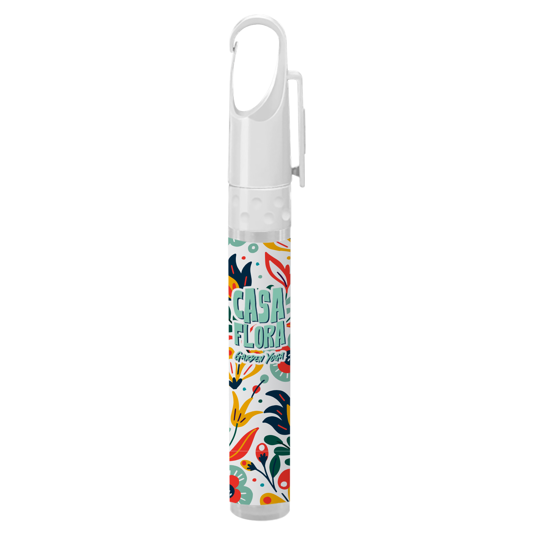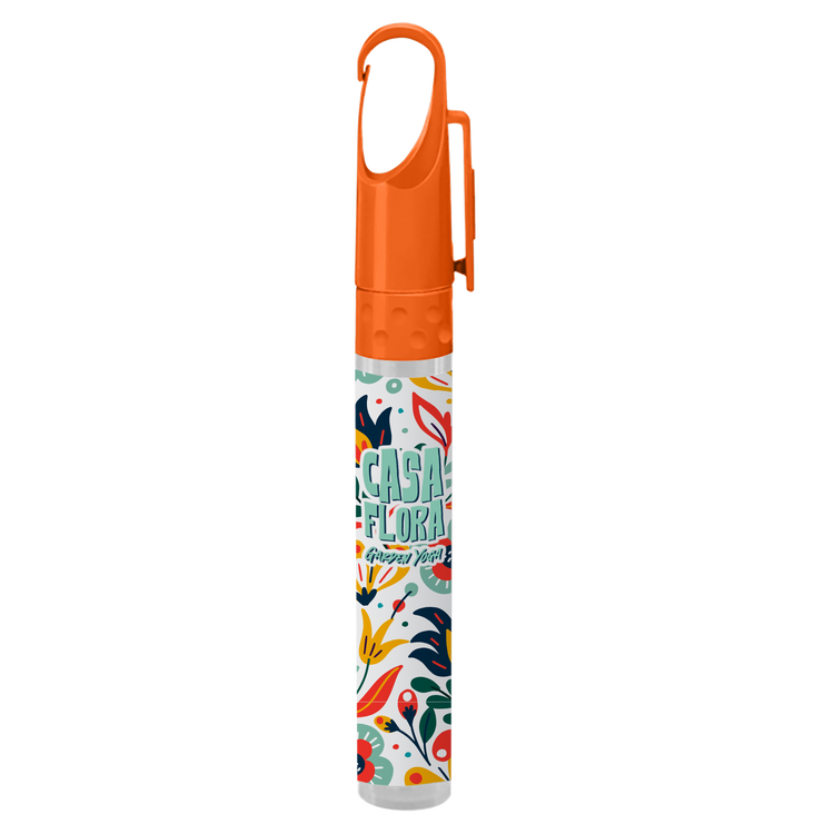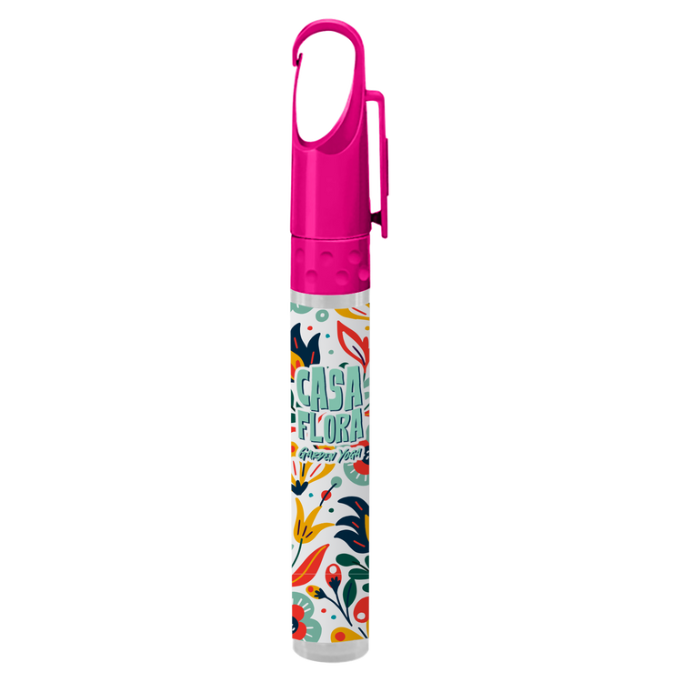 Keep germs at bay with this compact 10 ml. hand sanitizer pen that’s ready when you need it. With up to 80 sprays per pen, it features two clip styles built into the cap, allowing you to easily stick it in a pocket, clip it to a bag, or slide it into a notebook. Choose from several scents for a fresh clean wherever the day takes you. Additional decoration charges may apply.