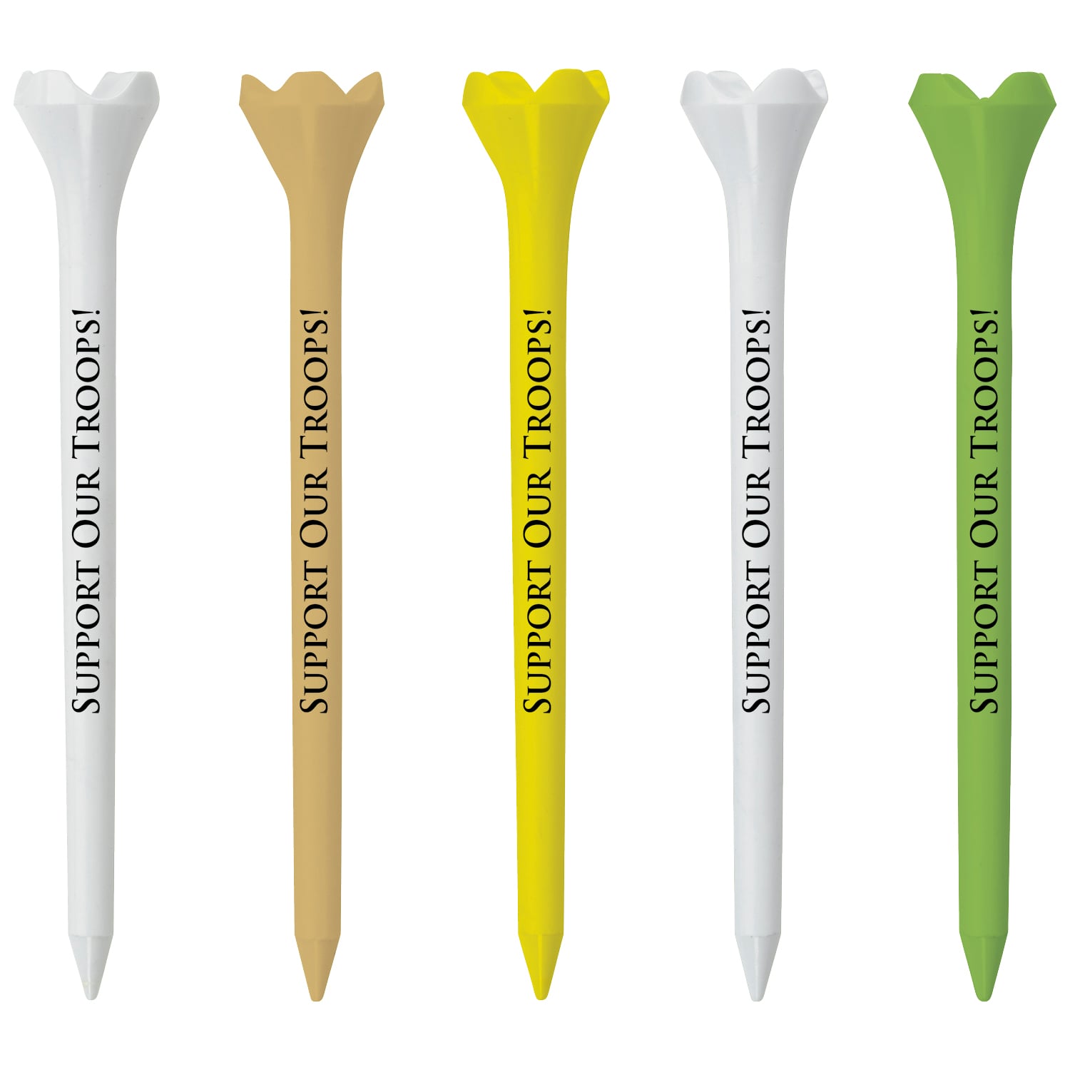 Looking for longer drives? Evolution golf tees have low-resistance prong tops for less friction between the golf ball and tee. This pack includes 5 screen printed 3-1/4" evolution tees in an individual polybag. Additional decoration charges may apply.