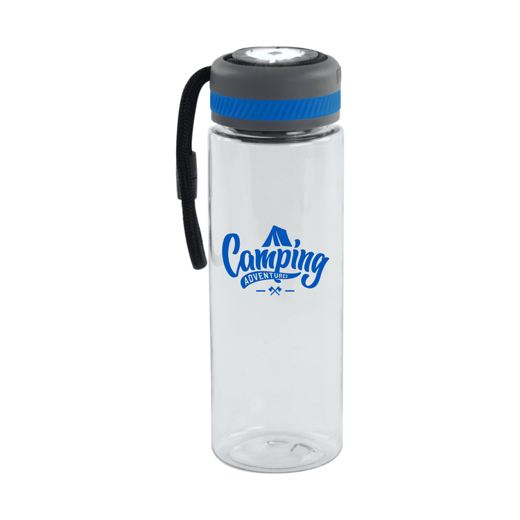 Cosmic Campground 27 oz. Tritan®Cob Lantern Bottle, a water bottle with an integrated COB light, USB rechargeable, BPA-free. BPA free. Fits most cup holders Additional decoration charges may apply.