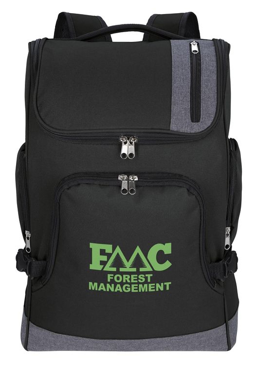 From the 15" padded laptop compartment, side compression straps and padded shoulder straps, this stylish backpack has everything you need. Additional decoration charges may apply.