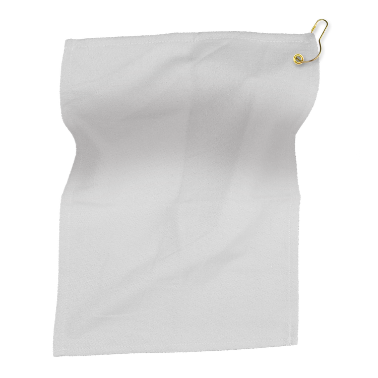 Hit the course in style with this 100% cotton terry/velour golf towel. Hemmed for durability and featuring a detachable metal loop clasp, it’s easy to clip to your golf bag or beltloop so it’s always ready to clean a dirty club or ball. Additional decoration charges may apply.