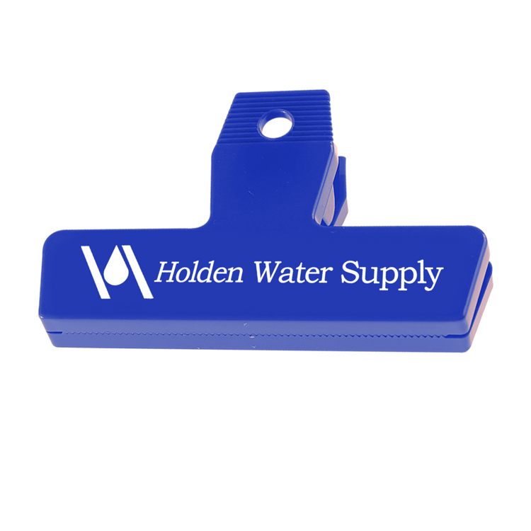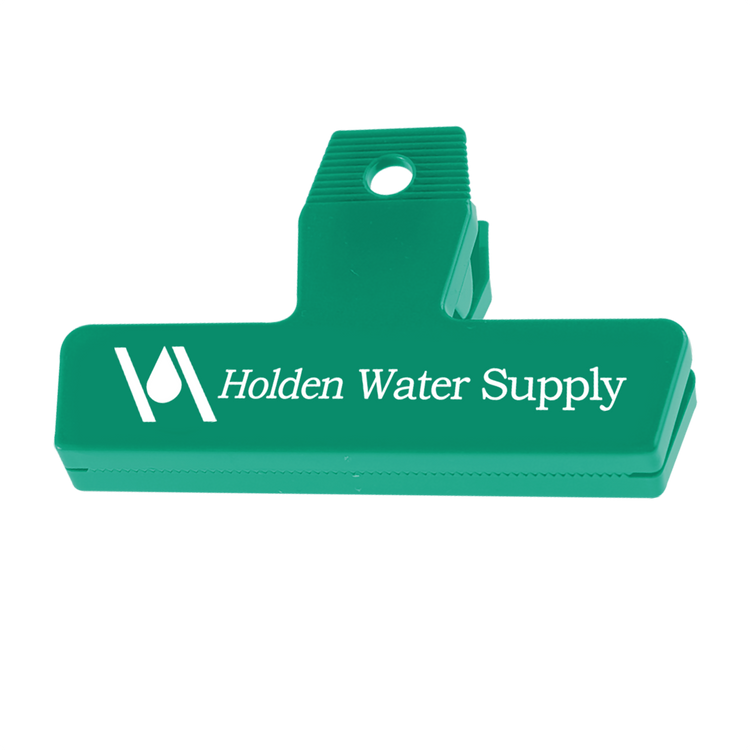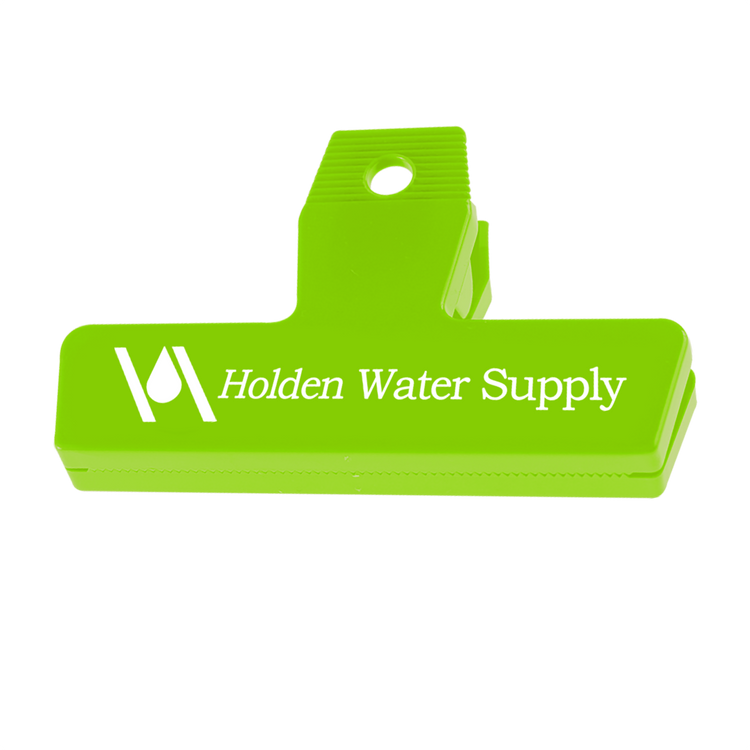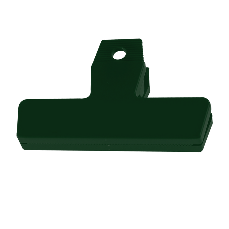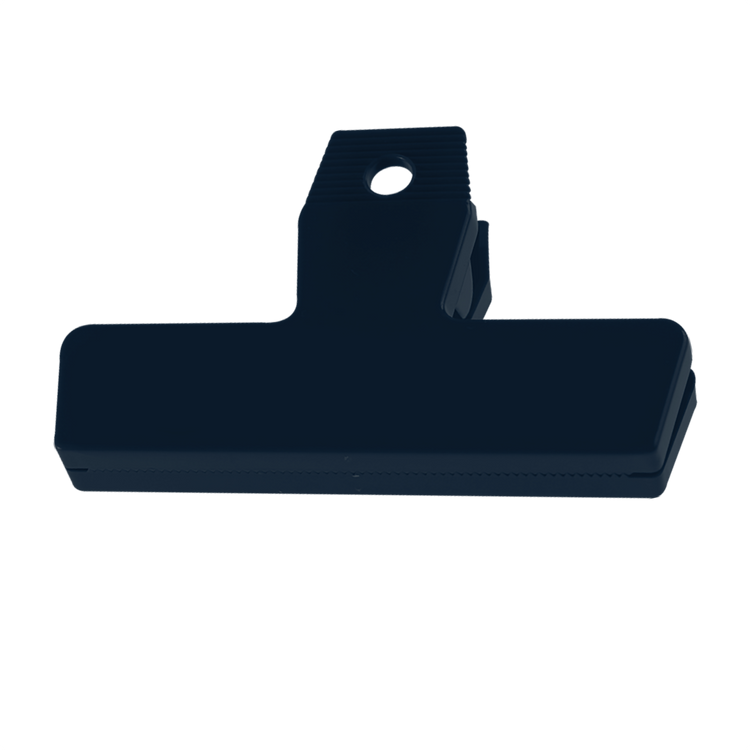 Featuring a strong spring for a secure seal, the 4" Bag Clip keeps snacks and other food items fresh and within easy reach. Create a custom look by mixing and matching colors to design your own unique two-tone style. This is a practical item recipients will reach for again and again. Black, Navy, and Dark Green are molded with 95% post-industrial recycled material. Additional decoration charges may apply.