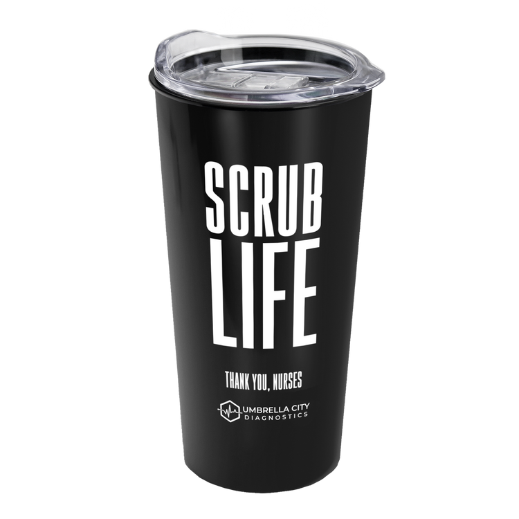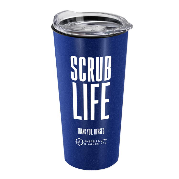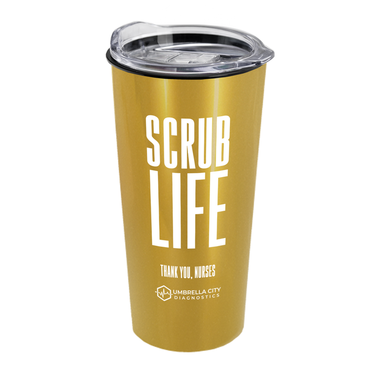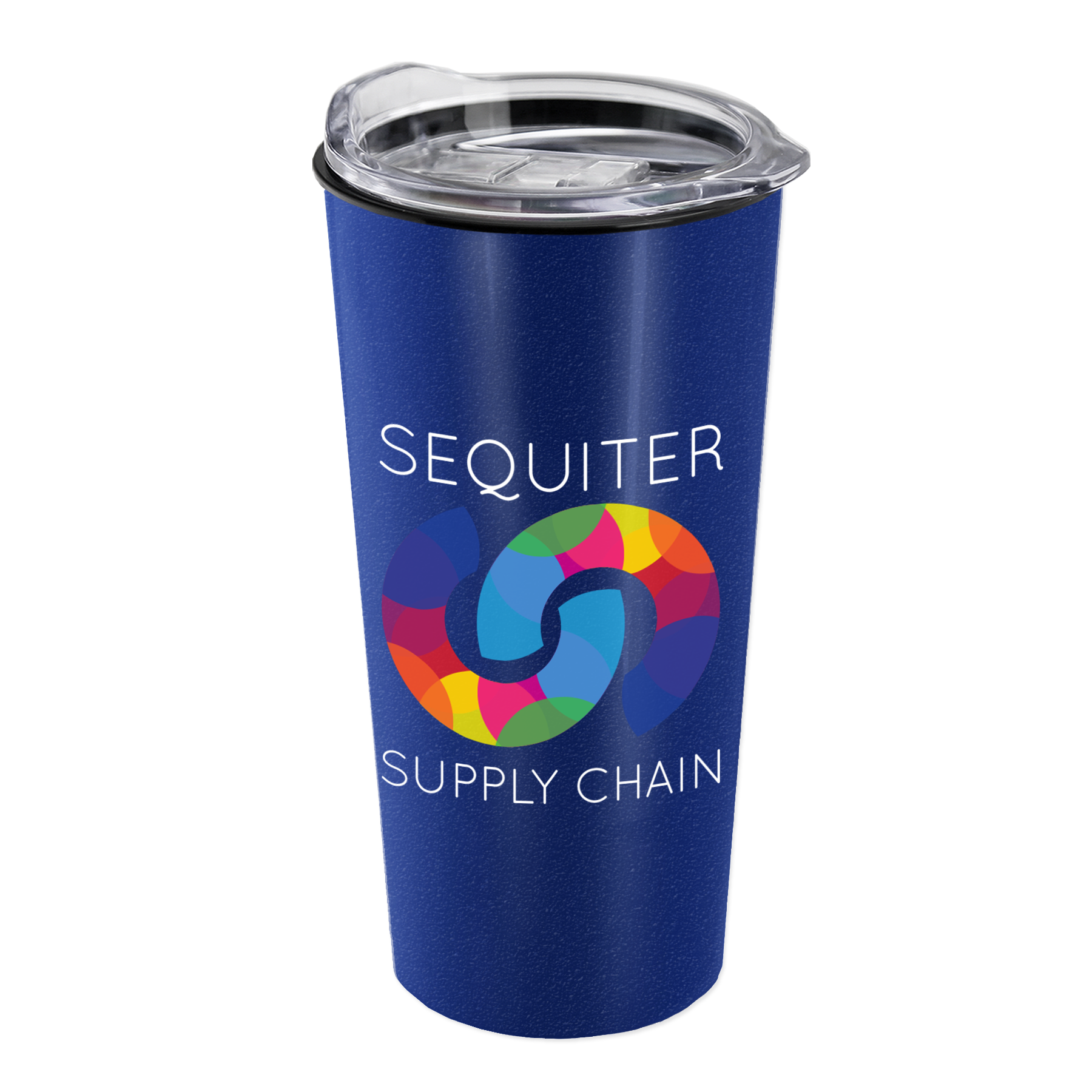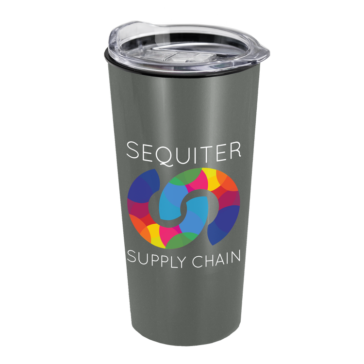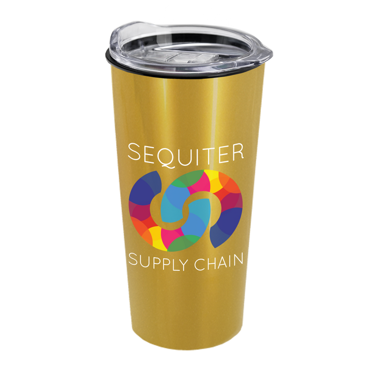 Add a little sparkle to your day with this 18 oz. double-wall insulated travel tumbler. It features a metallic outer finish and a push-in, sip-through slider lid for convenience. Additional decoration charges may apply.