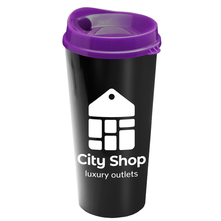 Power up your day with this 20 oz. double-wall insulated travel tumbler. Generously sized, this cup has a snap-on, sip-through lid for convenience. Mix and match tumbler and lid colors to create a look that’s uniquely yours. Additional decoration charges may apply.