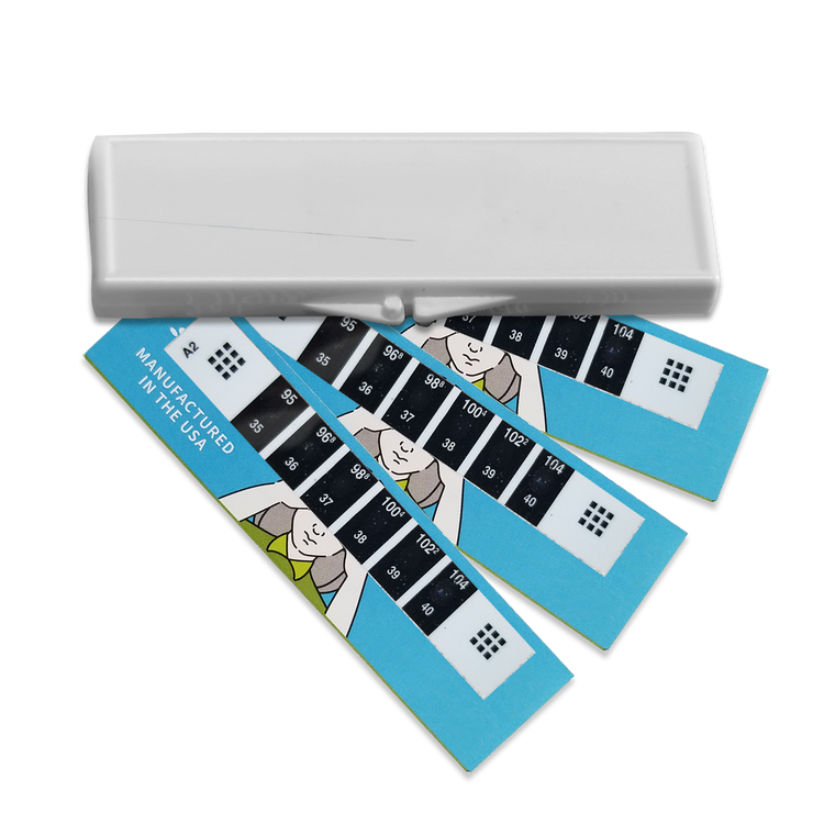 Includes: 3 reusable forehead thermometer strips and instructions