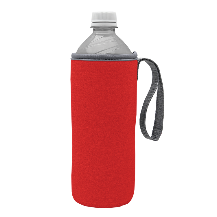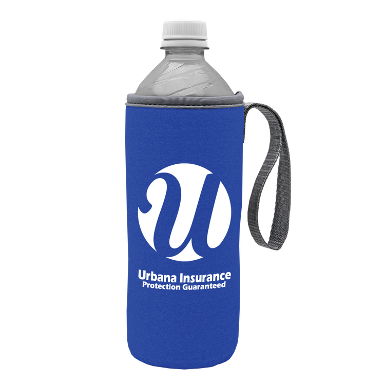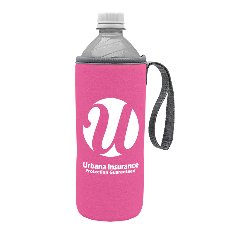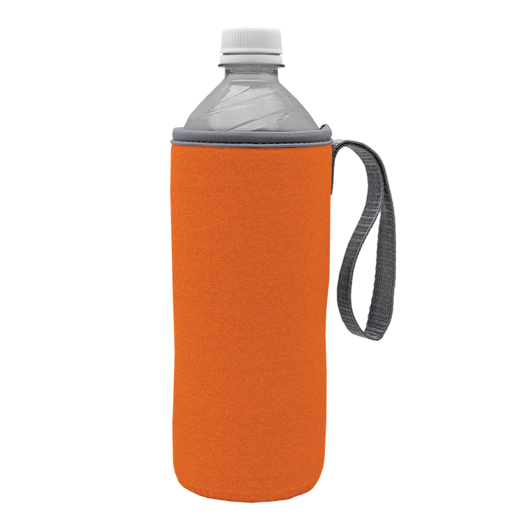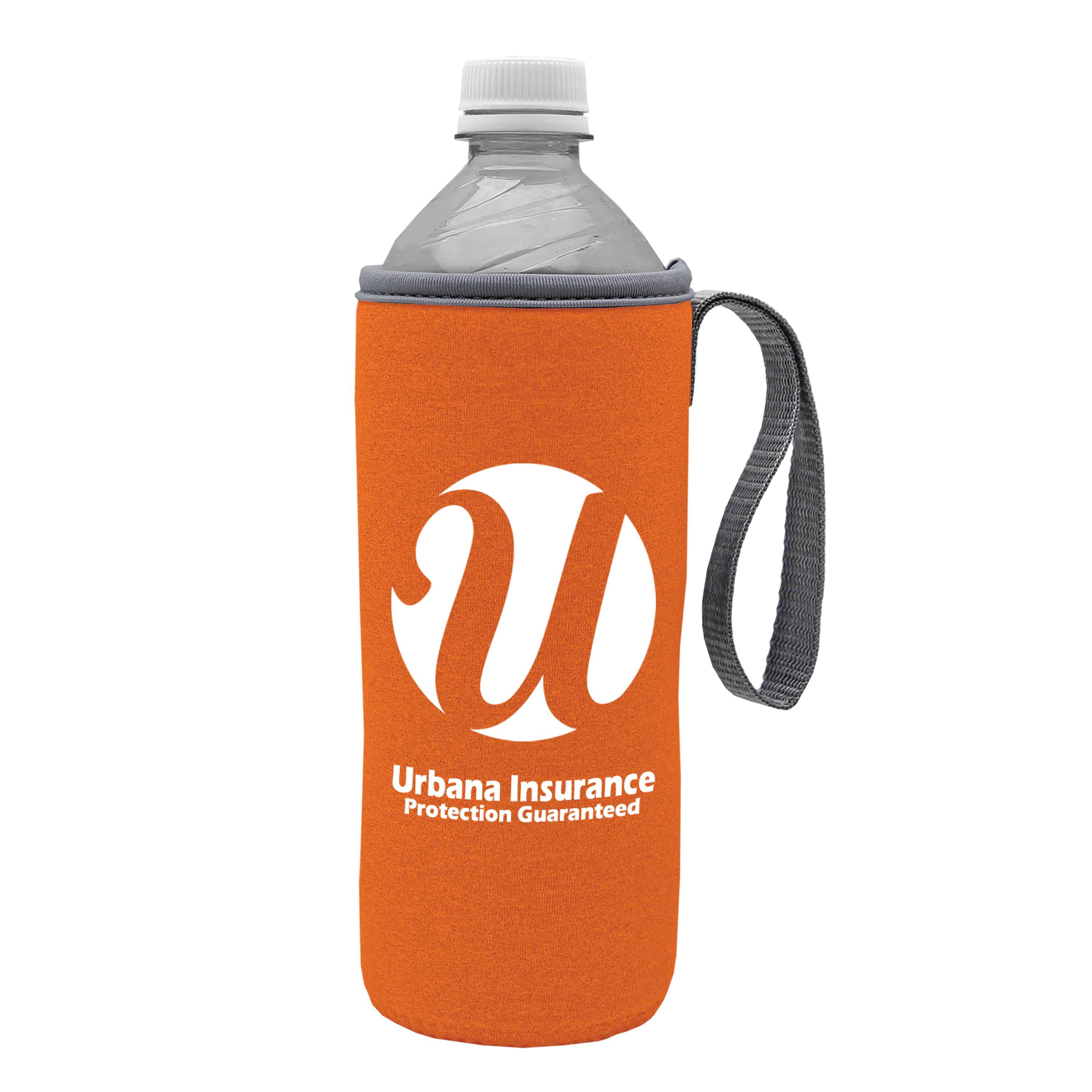 Turn heads while keeping your drink refreshingly cool with this eye-catching bottle insulator. Featuring gray trim, durable no-tear binding, and a handy carry strap, it’s made for refreshment on the move. It fits most 16 oz. and 20 oz. bottles plus longnecks, making it a versatile promo favorite that keeps your brand in hand. Additional decoration charges may apply.