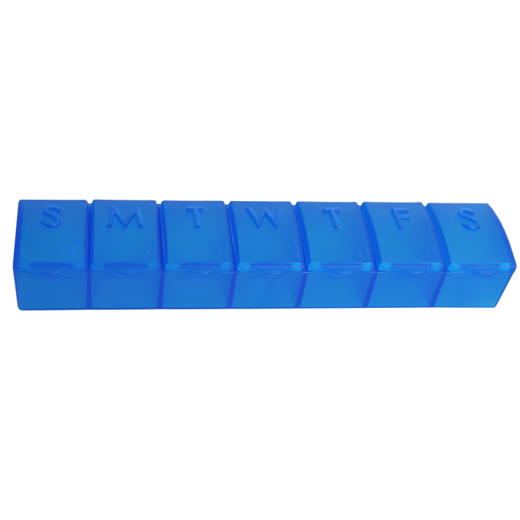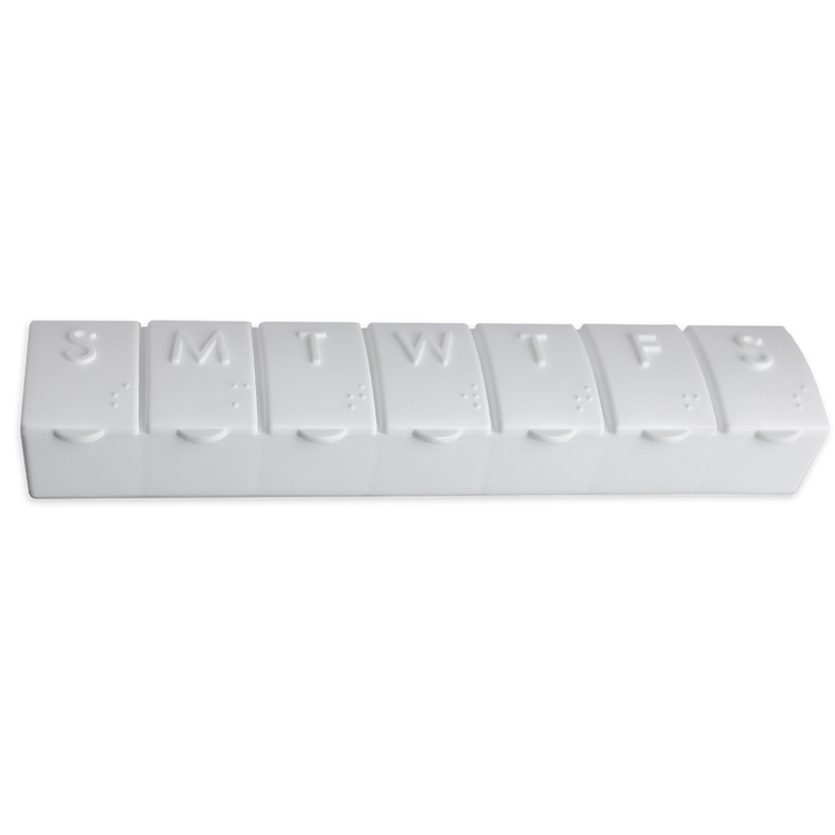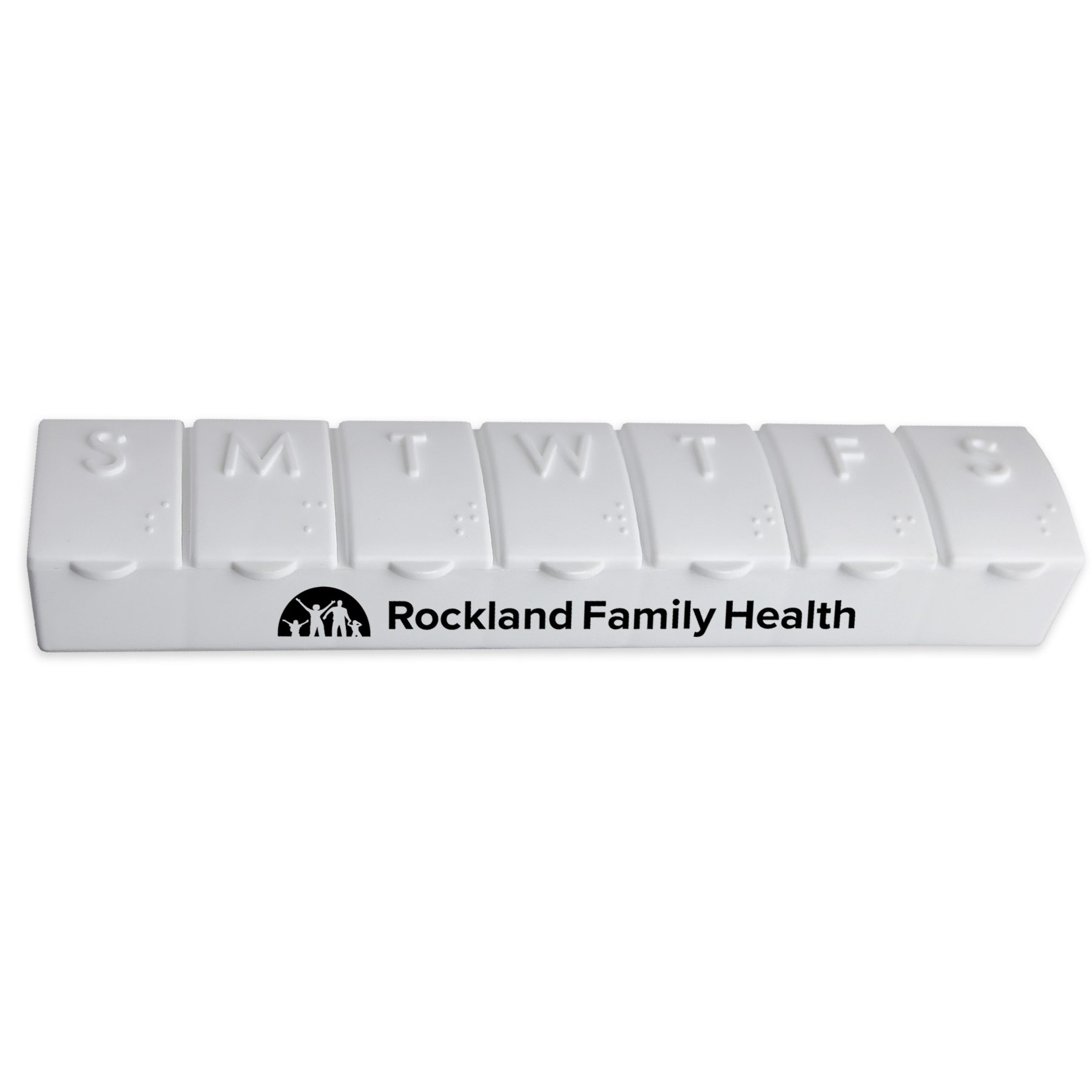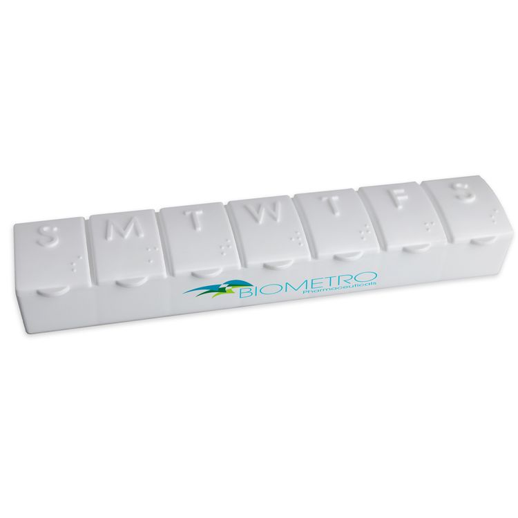 This large seven-compartment pill box helps keep your medication organized throughout the week. Each compartment features a snap-lid closure, as well as day-of-the-week and Braille markings. Additional decoration charges may apply.
