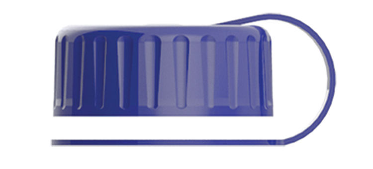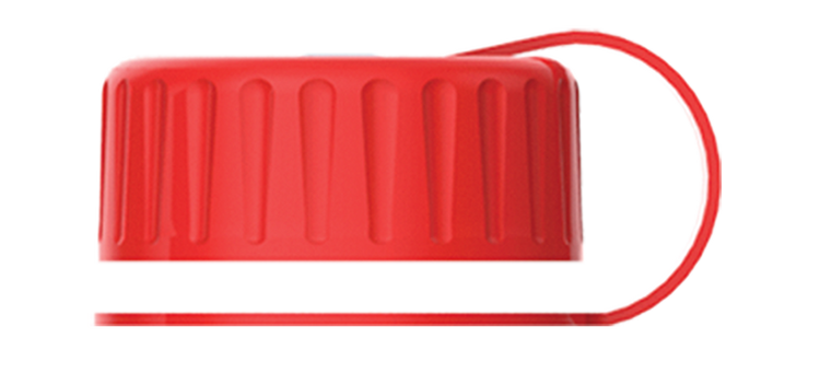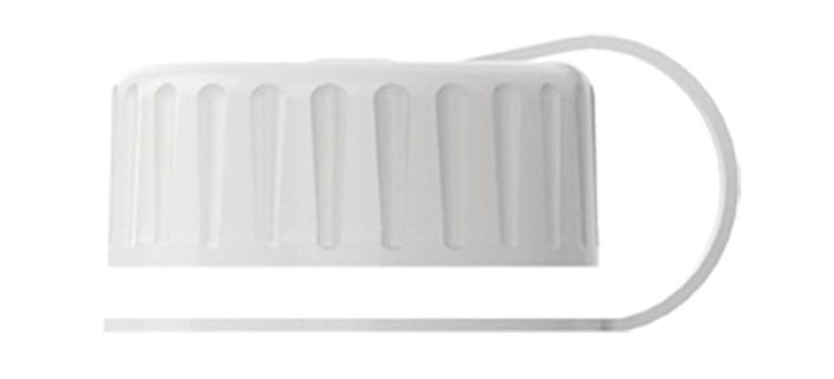 Tethered, screw-on lid