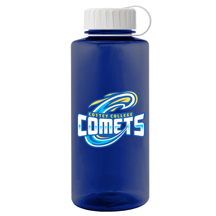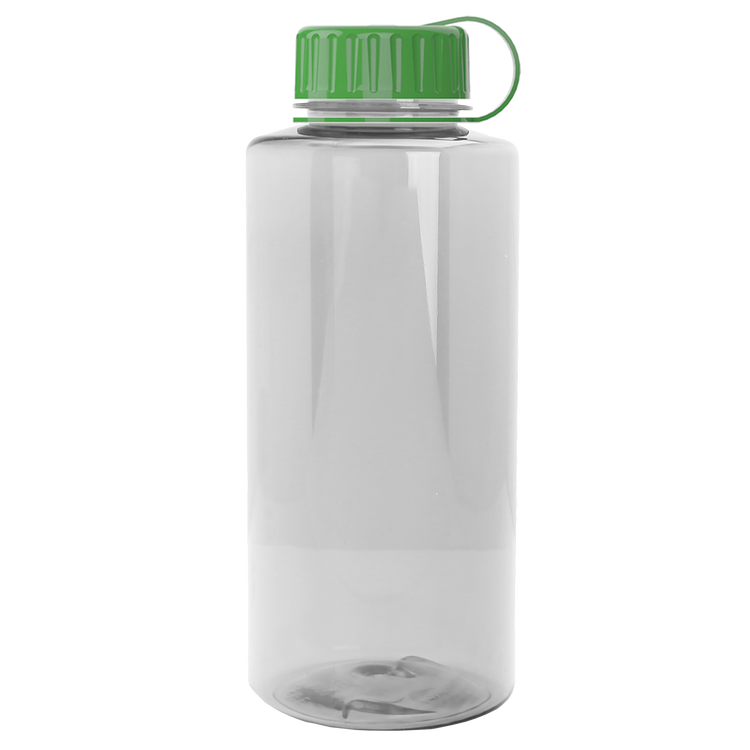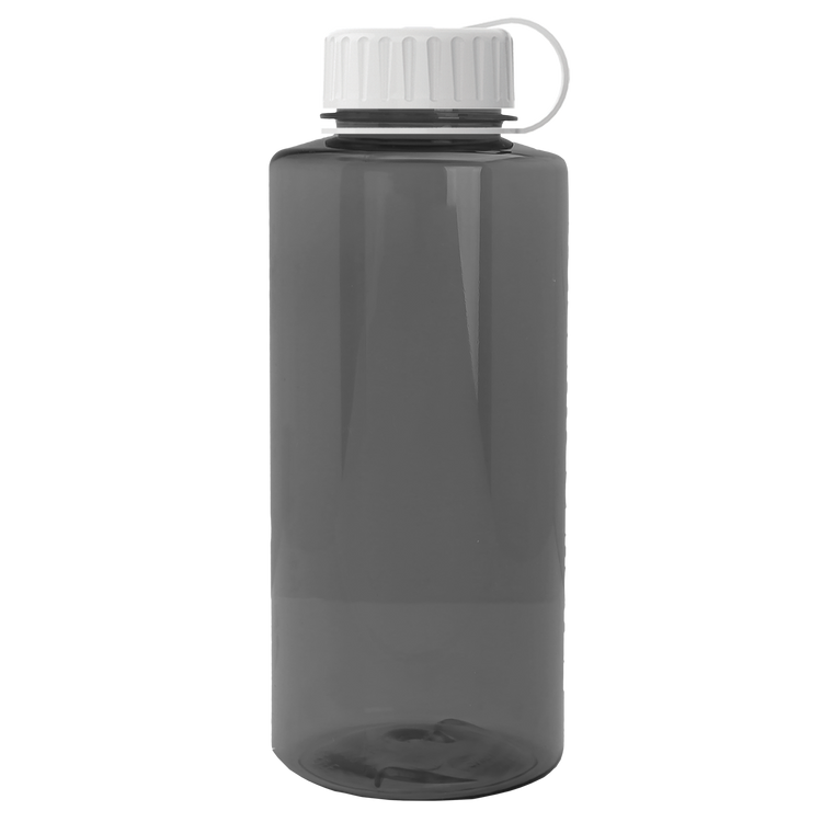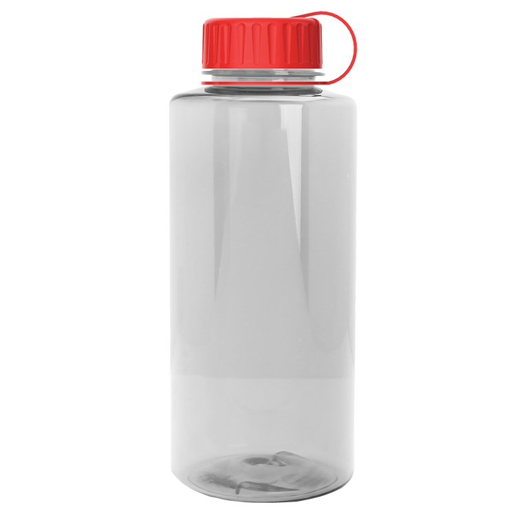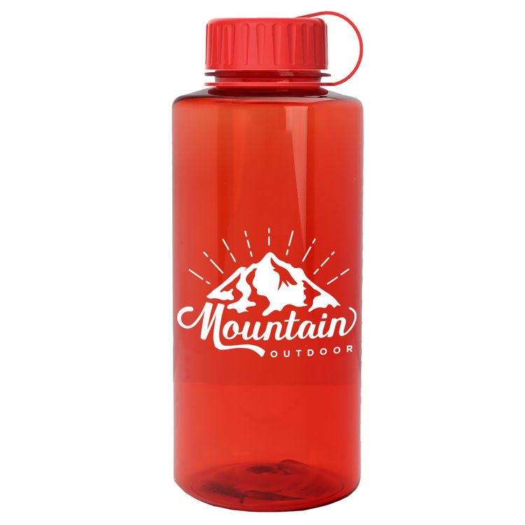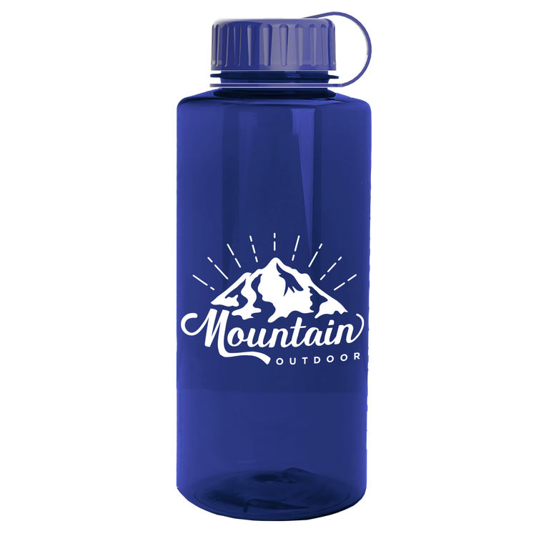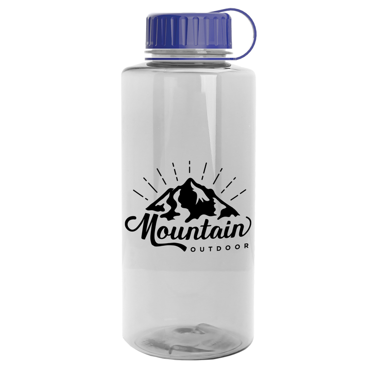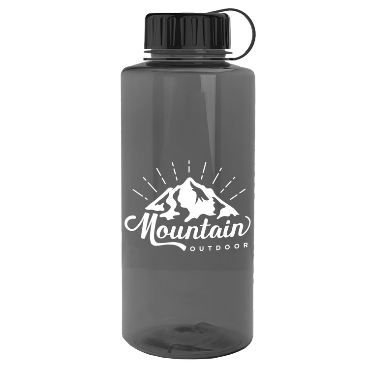 Stay hydrated on your next outdoor adventure with this 36 oz. transparent bottle featuring a secure tethered lid and extra-large capacity. Built with rigid-wall construction from durable Tritan® plastic, it stands up to everyday wear. Mix-and-match bottle and lid color options make it a perfect choice for schools, hospitals, athletic facilities, charity events, and more. Upgrade with an optional Motivational Measurement imprint on the second side, available at no extra charge when using the same screen print ink color as your side-one imprint. Additional decoration charges may apply.