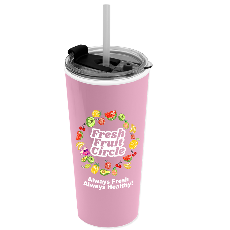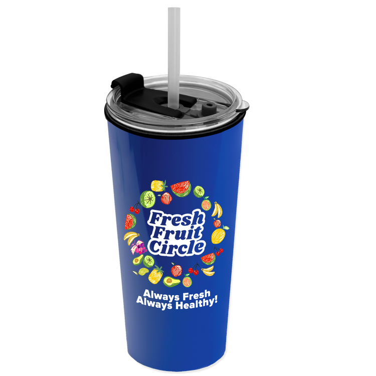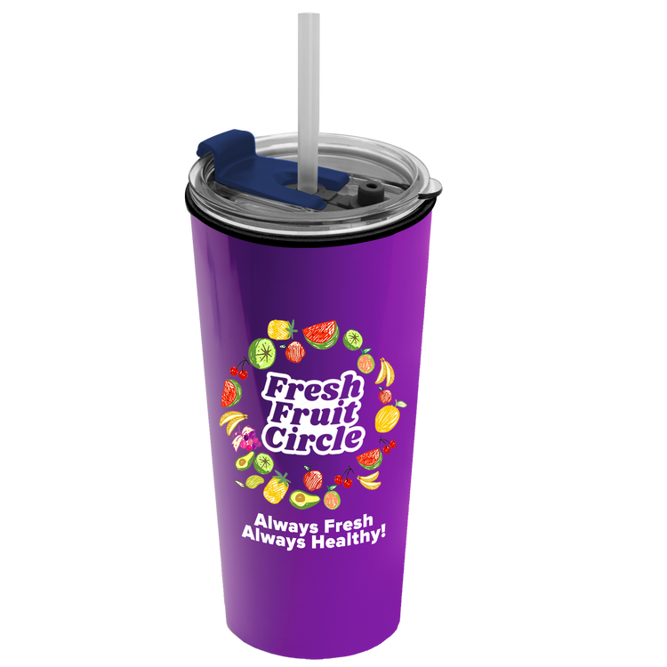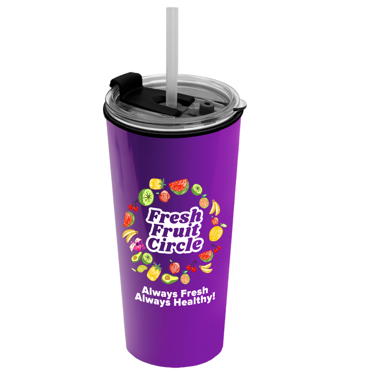 Sip your favorite beverages while on the move with this double-wall insulated 18 oz. tumbler, designed to keep drinks hot or cold longer. Its 2-in-1 lid with straw allows you to sip your way, offering easy access to your go-to choice for staying hydrated. With a sleek design that fits most cup holders and no need for a protective sleeve, it’s the perfect travel companion. Additional decoration charges may apply.