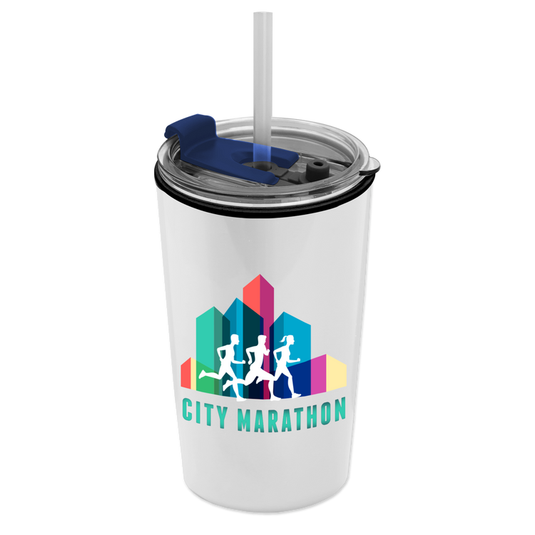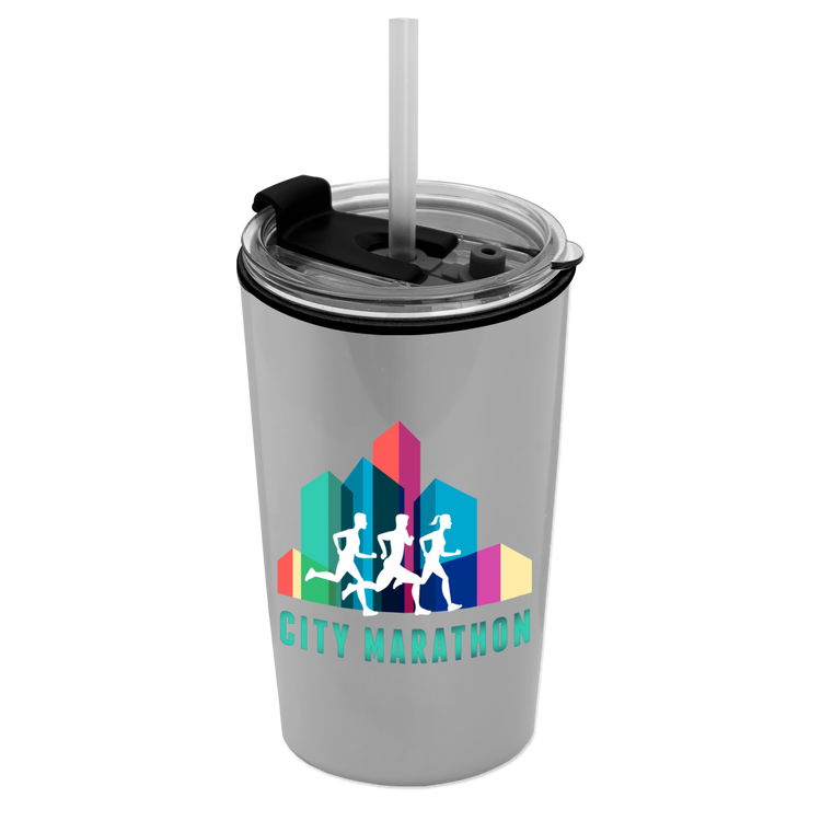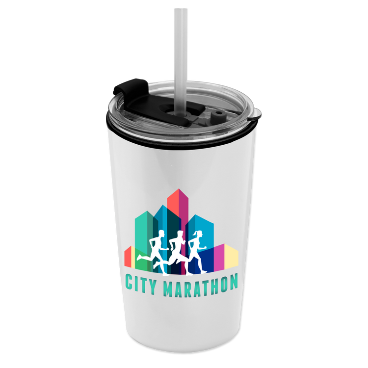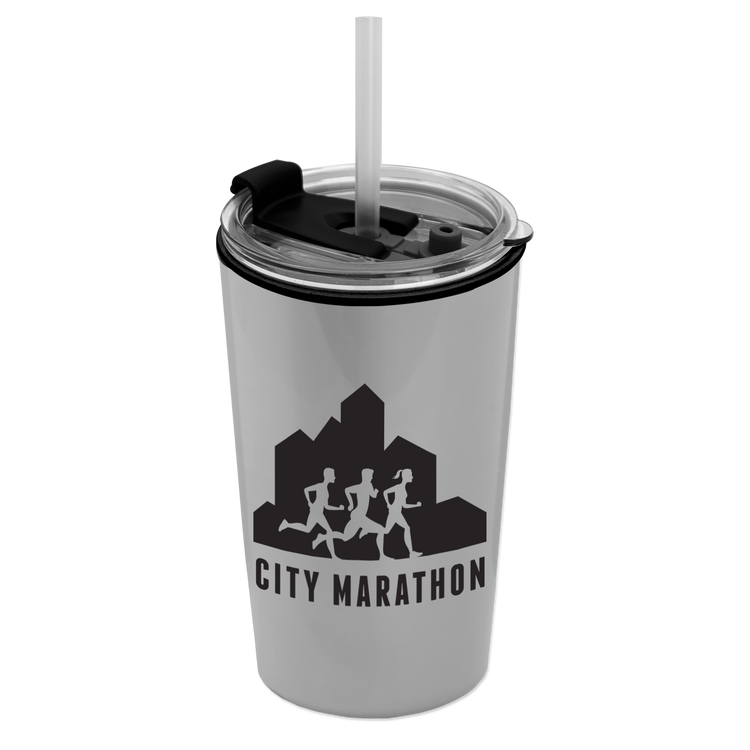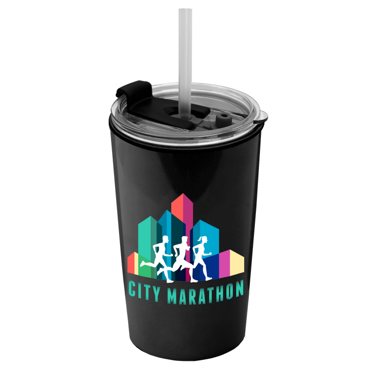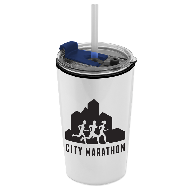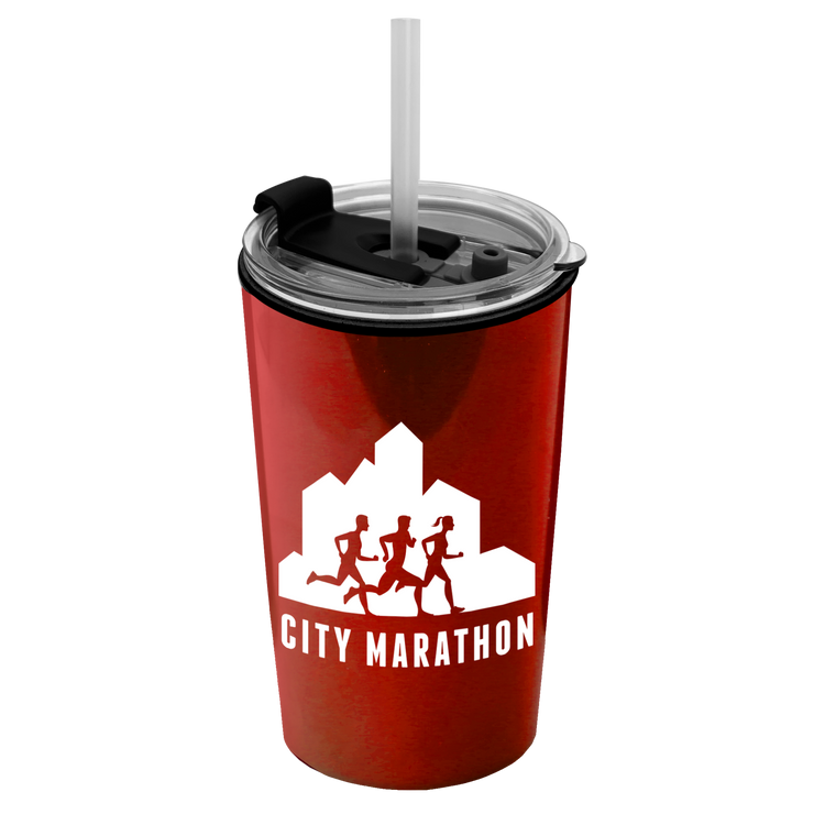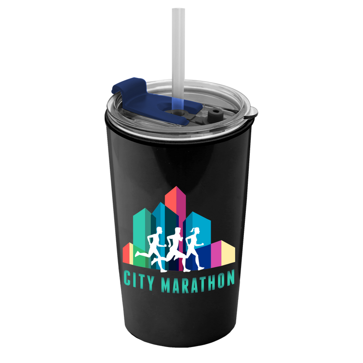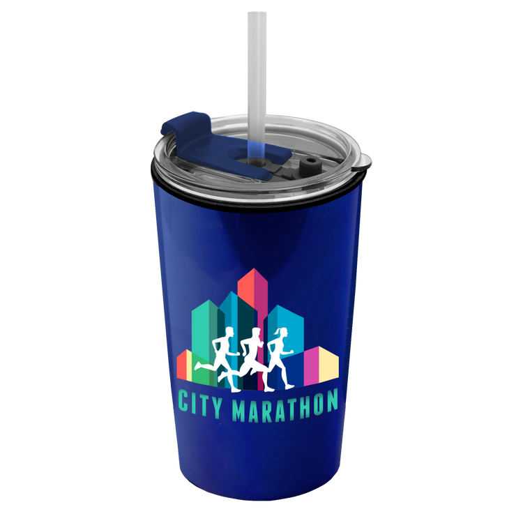 Power up your day with this 18 oz. double-wall insulated travel tumbler. Generously sized, this cup has a 2-in1 sip-through lid with a straw for added convenience. Mix and match tumbler and lid colors to create a look that’s uniquely yours. Additional decoration charges may apply.