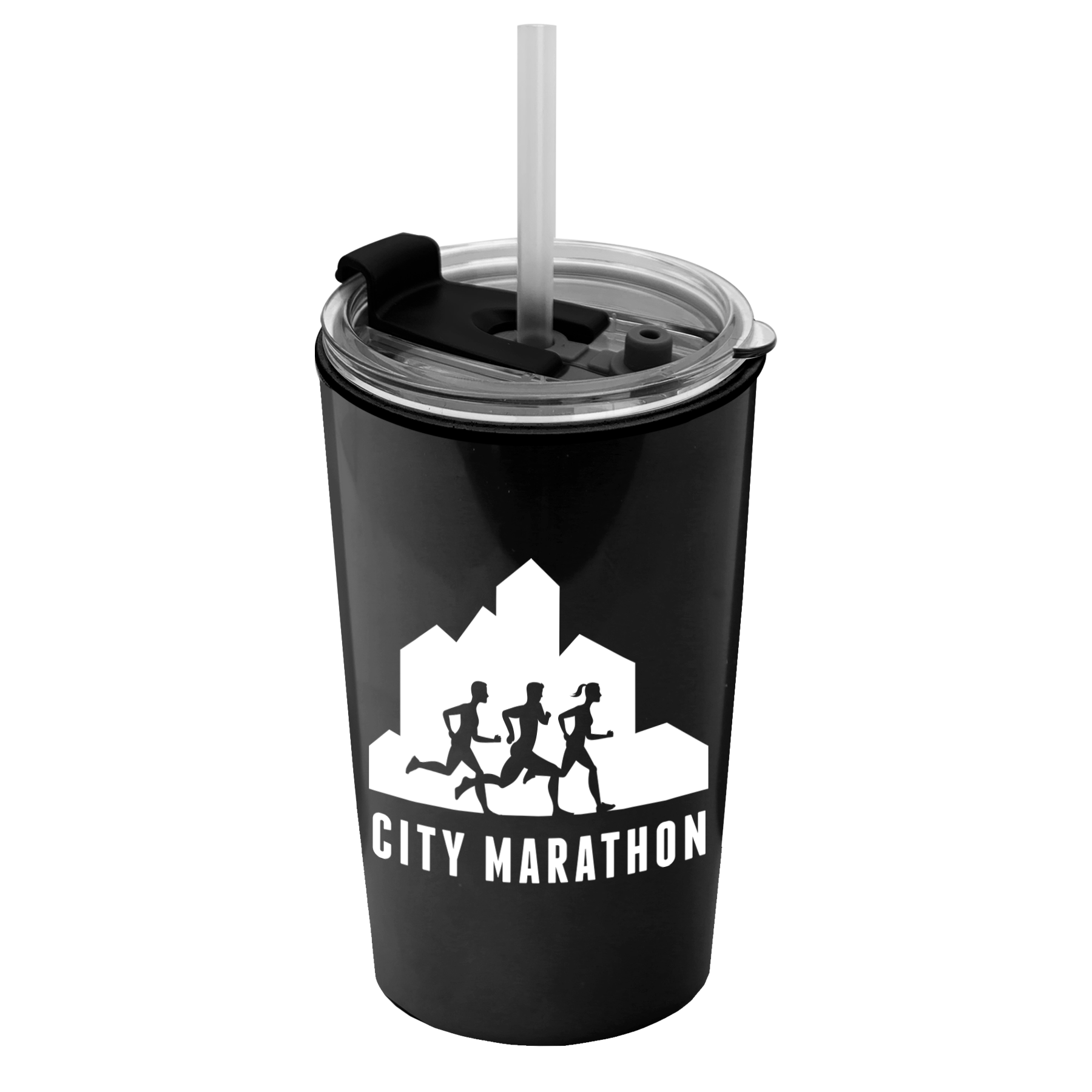 2-in-1 lid with sip-through opening and included straw