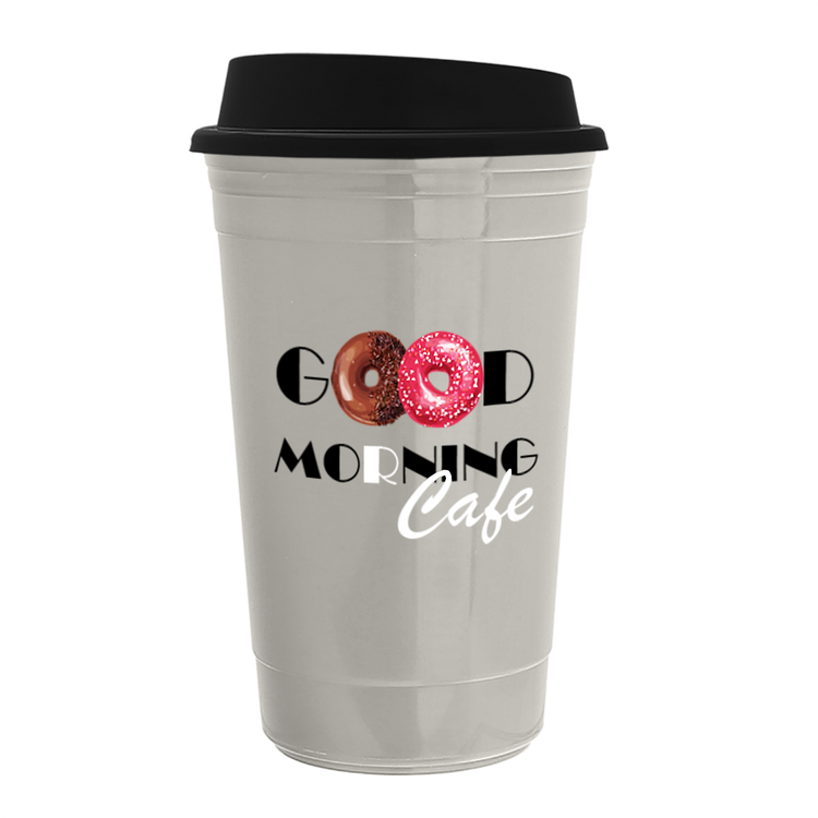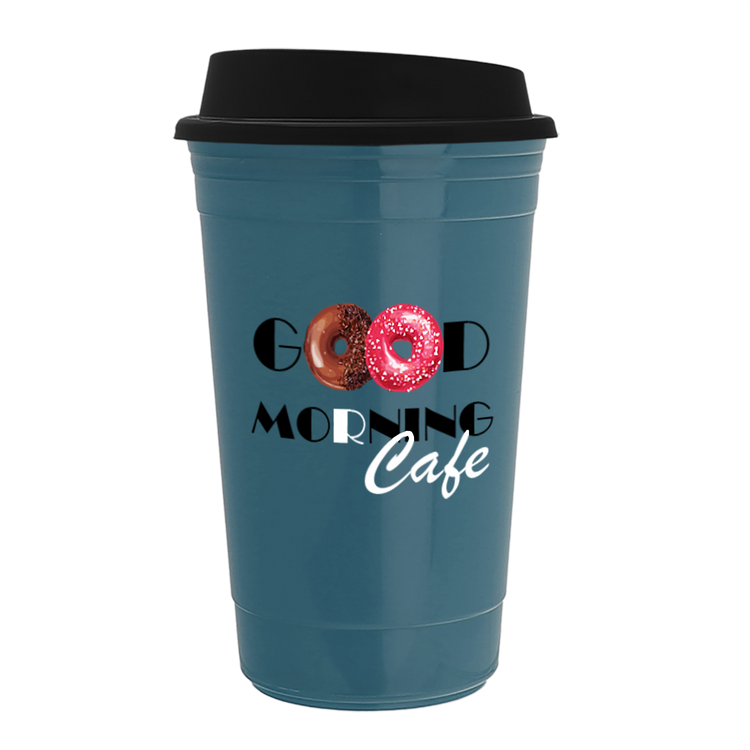 Enjoy your favorite hot drinks on the go with this American-made double-wall insulated 16 oz. travel cup featuring a convenient sip-through lid. Its compact design fits most vehicle cup holders, keeping your coffee warm throughout your commute. Mix and match cup and lid colors to reflect your brand’s personality. Additional decoration charges may apply.