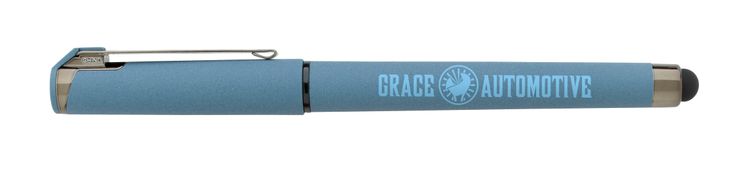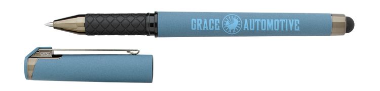Experience a new level of sophistication with this sleek two-piece gel pen featuring a stylish soft-touch suede finish and cool gunmetal trim. The 0.7mm fine-point tip ensures smooth, precise writing, making it perfect for detailed notes or creative expression. Thanks to fraud-resistant ink, this pen combines elegance, comfort, and security for a premium writing experience. 37% of overall product made of post-consumer recycled ABS. Additional decoration charges may apply.