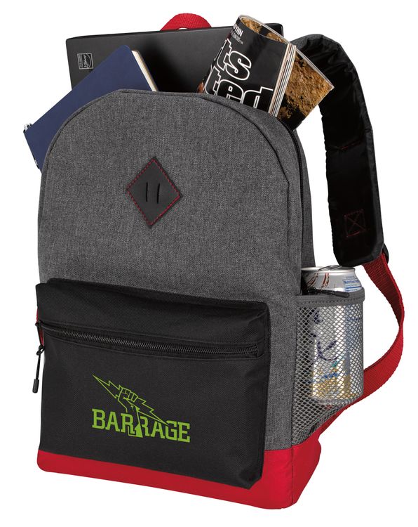 This trendy computer backpack is a great accessory for busy professionals. Its front zippered pocket provides extra storage space for your gear and the padded adjustable shoulder straps make it easy to carry. Additional decoration charges may apply.