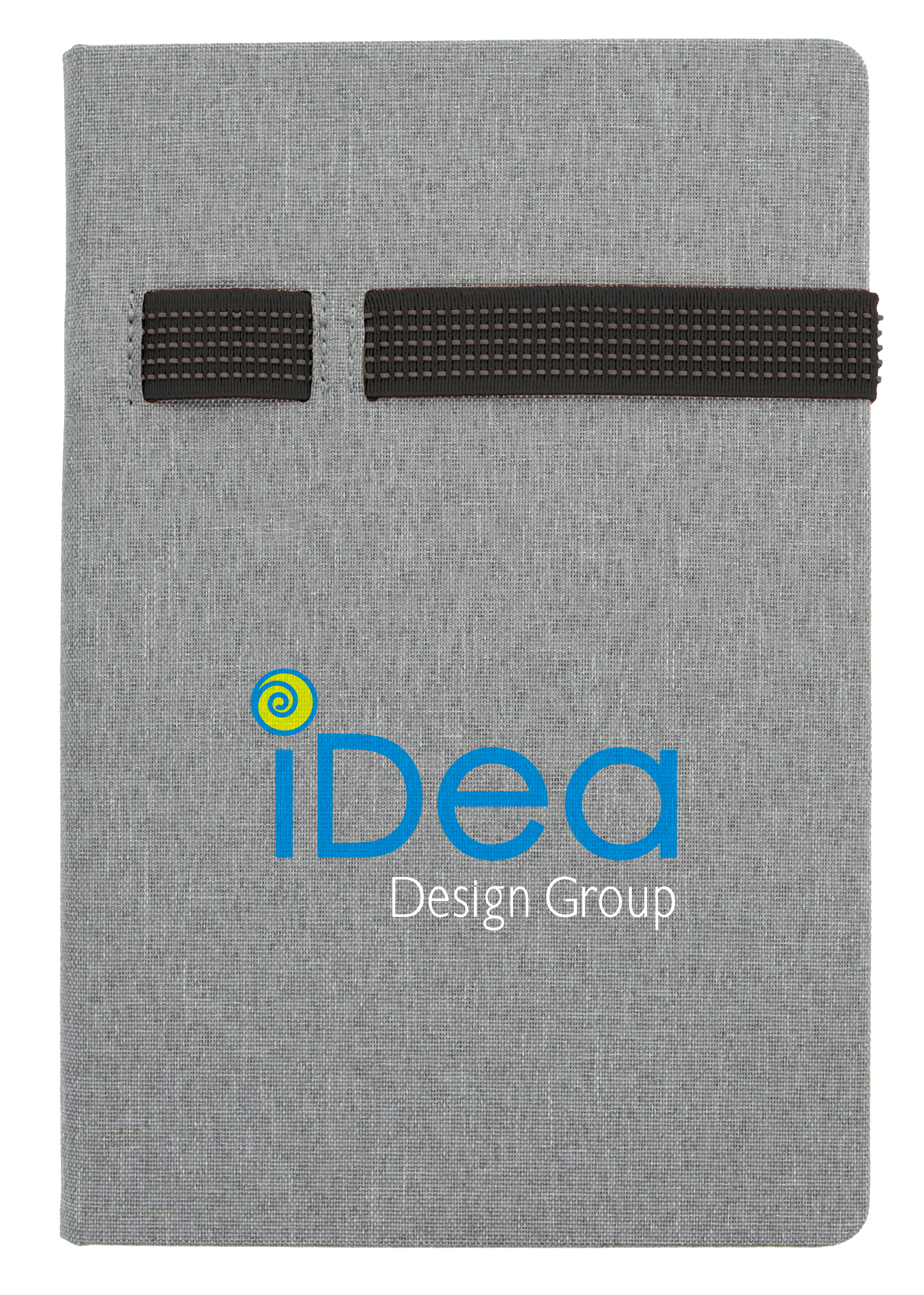 The understated heather gray cover of this journal gives it a modern feel. Use the patterned elastic band not only to keep it closed but also as a safe place to store your favorite writing instrument. Additional decoration charges may apply.
