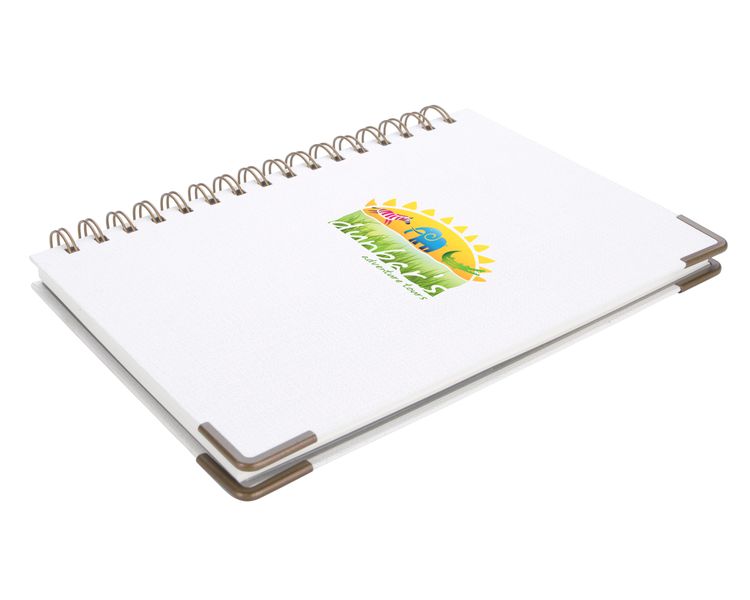 Textured hard cover notebook featuring metal accents on the corners.