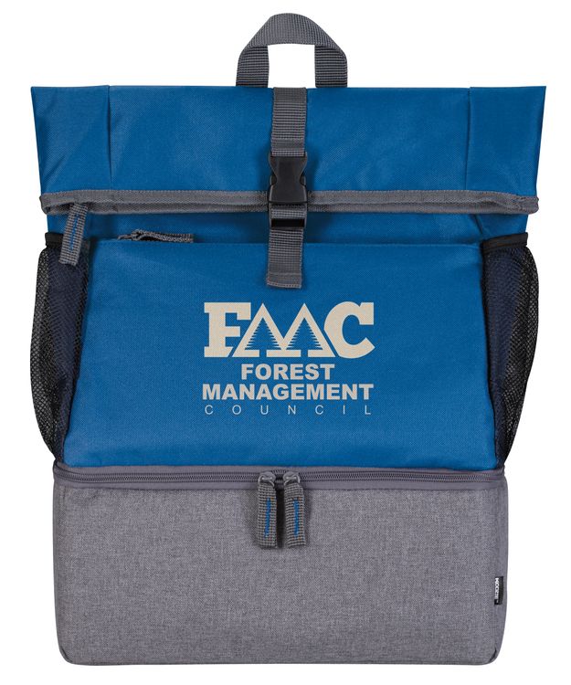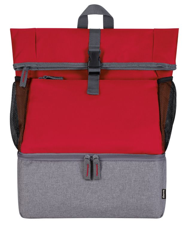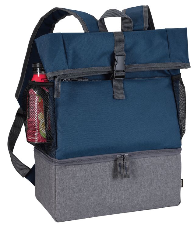 Pack your laptop and your lunch all in this dual-function backpack! The top has a padded laptop sleeve and room for other essentials. The bottom is an insulated zippered compartment with a heat-sealed PEVA liner that prevents leaks. It's perfect for marathon sessions on campus or at the office. Fits most laptops up to 17”. To ensure fit, please order a sample as laptop measurements may vary. Additional decoration charges may apply.