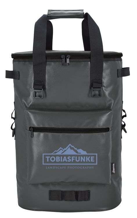 The premium Koozie® Olympus cooler Backpack, with a heat-sealed PEVA liner, is the perfect way to carry your refreshments for a day of fun. It has a 36-can capacity and is made of an easy-to-wipe-clean tarpaulin. Additional decoration charges may apply.