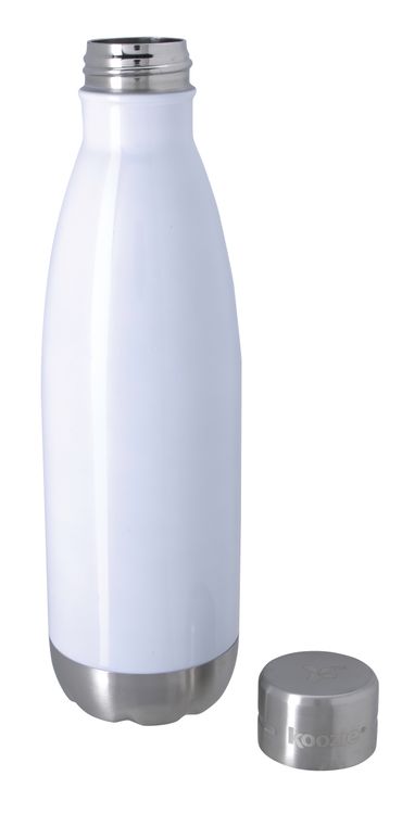An instant bestseller, this Koozie® stainless steel double-wall sport bottle features a metal screw-on lid. Unlike many others out there, the lid only has a small silicone gasket. This construction makes the bottle leakproof, a real advantage when you throw it in your gym bag. Additional decoration charges may apply.