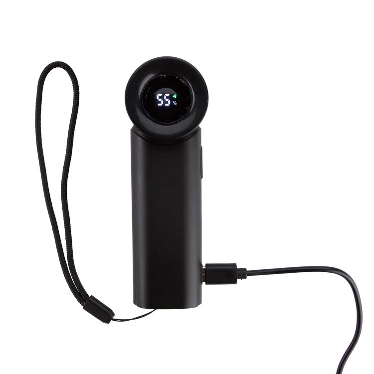 Beat the heat with this rechargeable handheld fan that keeps you cool wherever you are. Just tap the on/off button and watch the LED display as you adjust through five speeds to find your perfect breeze. The outer case is crafted from 100% post-consumer recycled ABS, and it includes a USB-C charging cord so it’s always ready when you need to cool off. Additional decoration charges may apply.