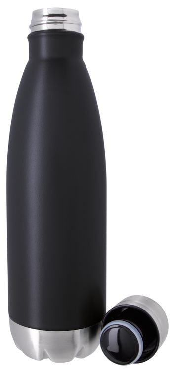 The powder-coated finish on this 18 oz. double-wall vacuum-insulated bottle gives it a unique texture. This bottle is not only sweatproof but it also has a screw-on, leakproof lid and will keep your drinks hot or cold for up to 12 hours. Additional decoration charges may apply.